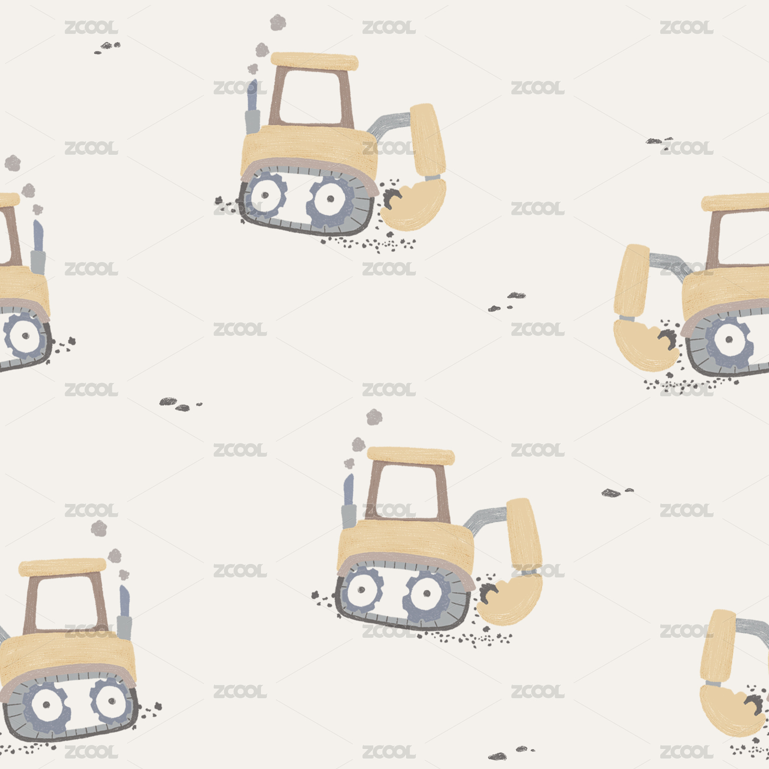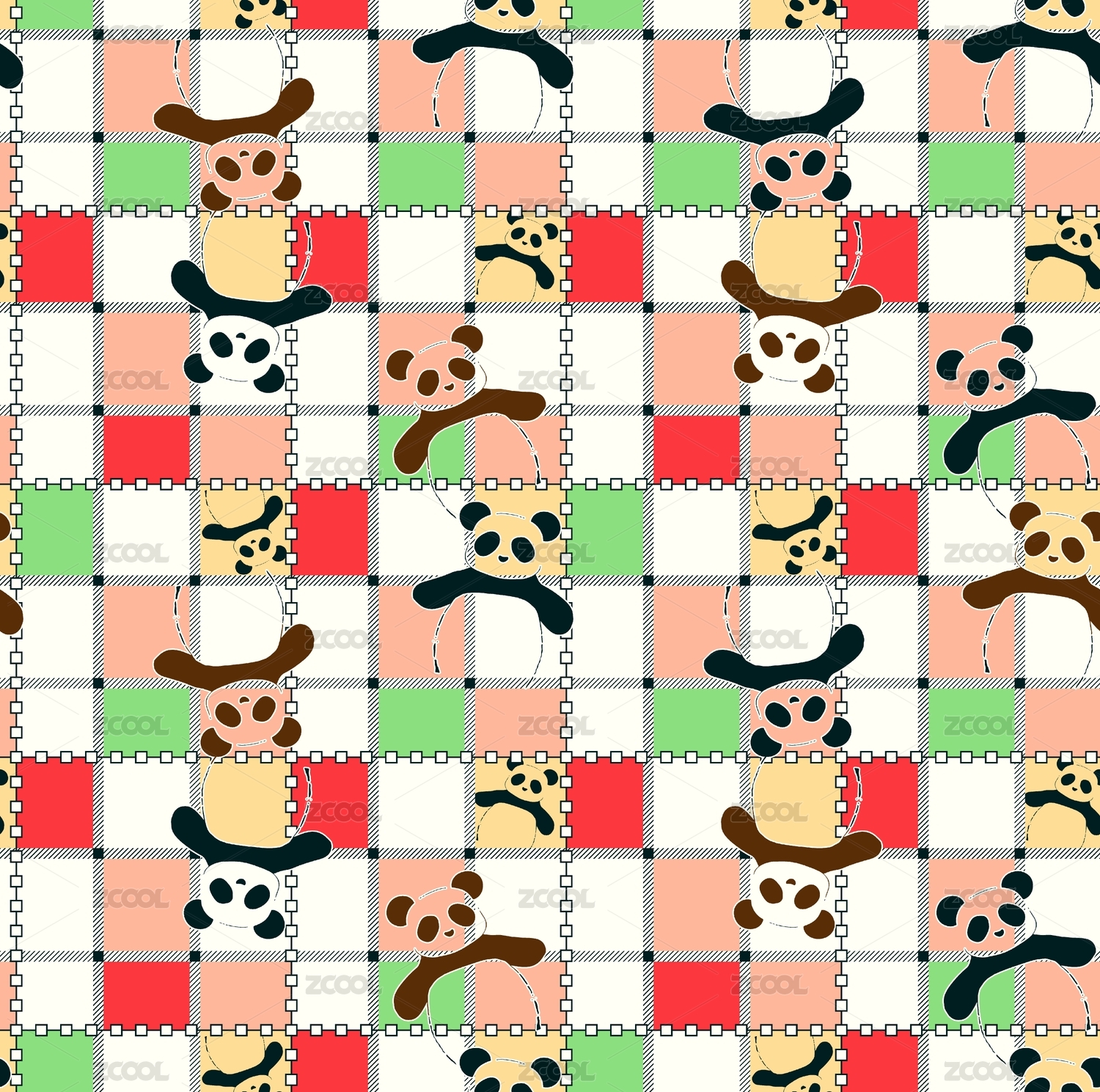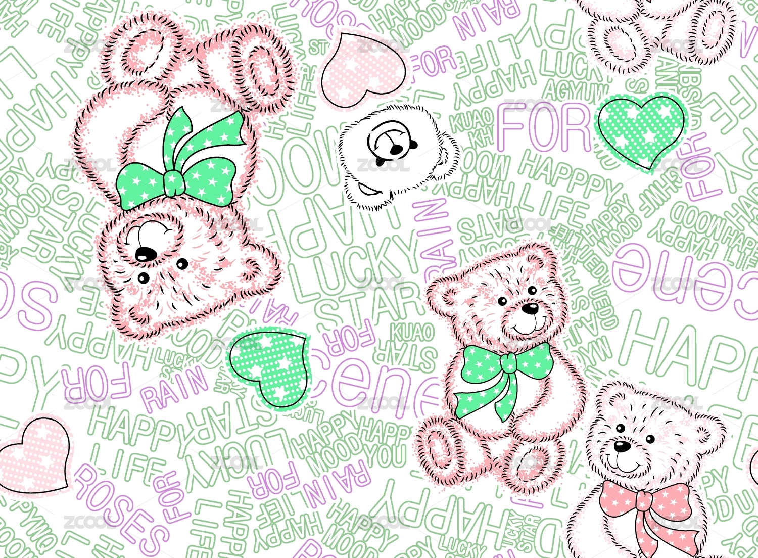 熊 兔子卡通印花背景图案插画 四方连续