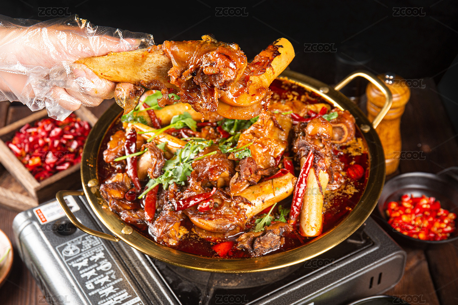 青花瓷大碗里的黄豆红烧羊骨红烧羊蝎子米粉