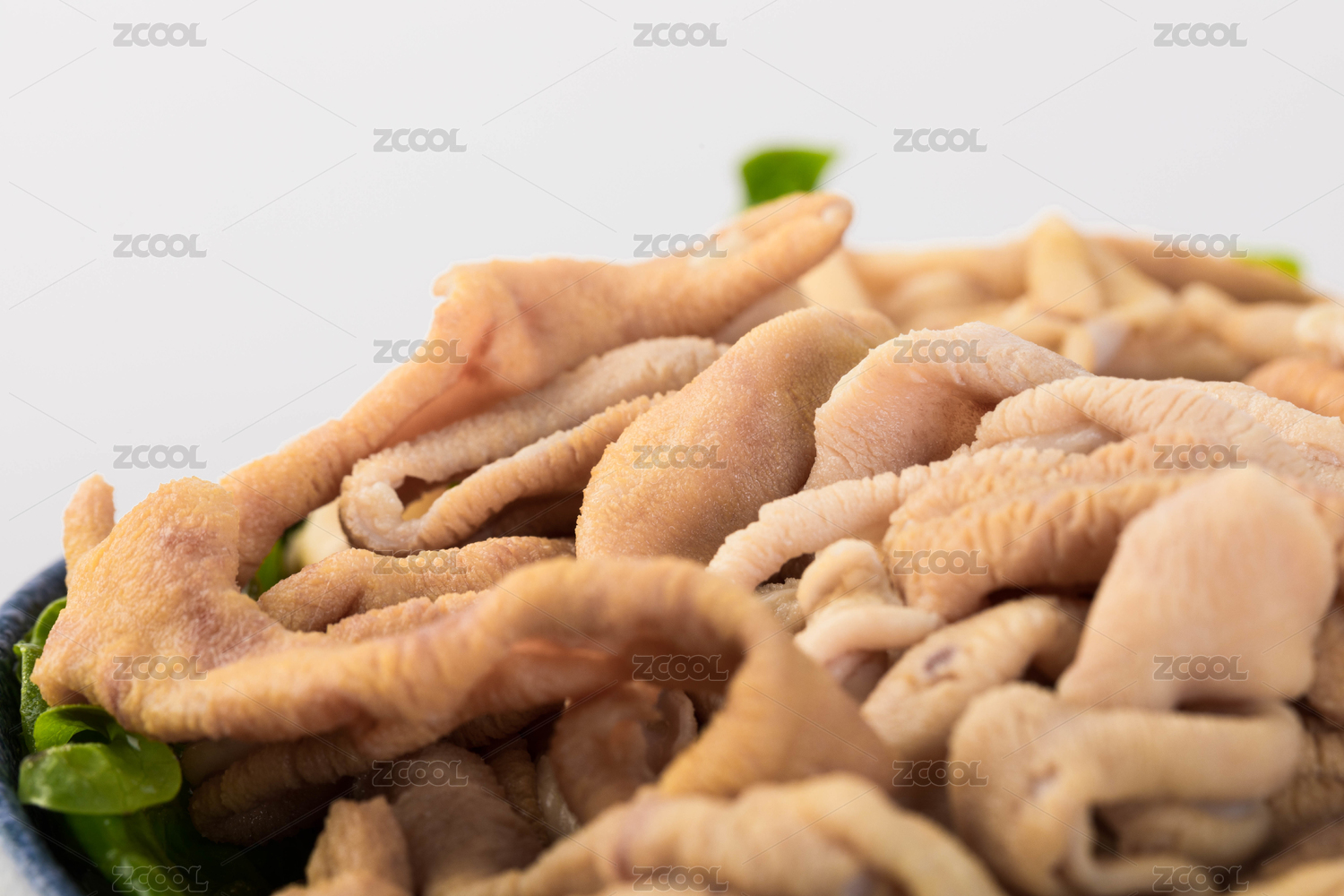 一盘放在白色背景上的食材鸭肠