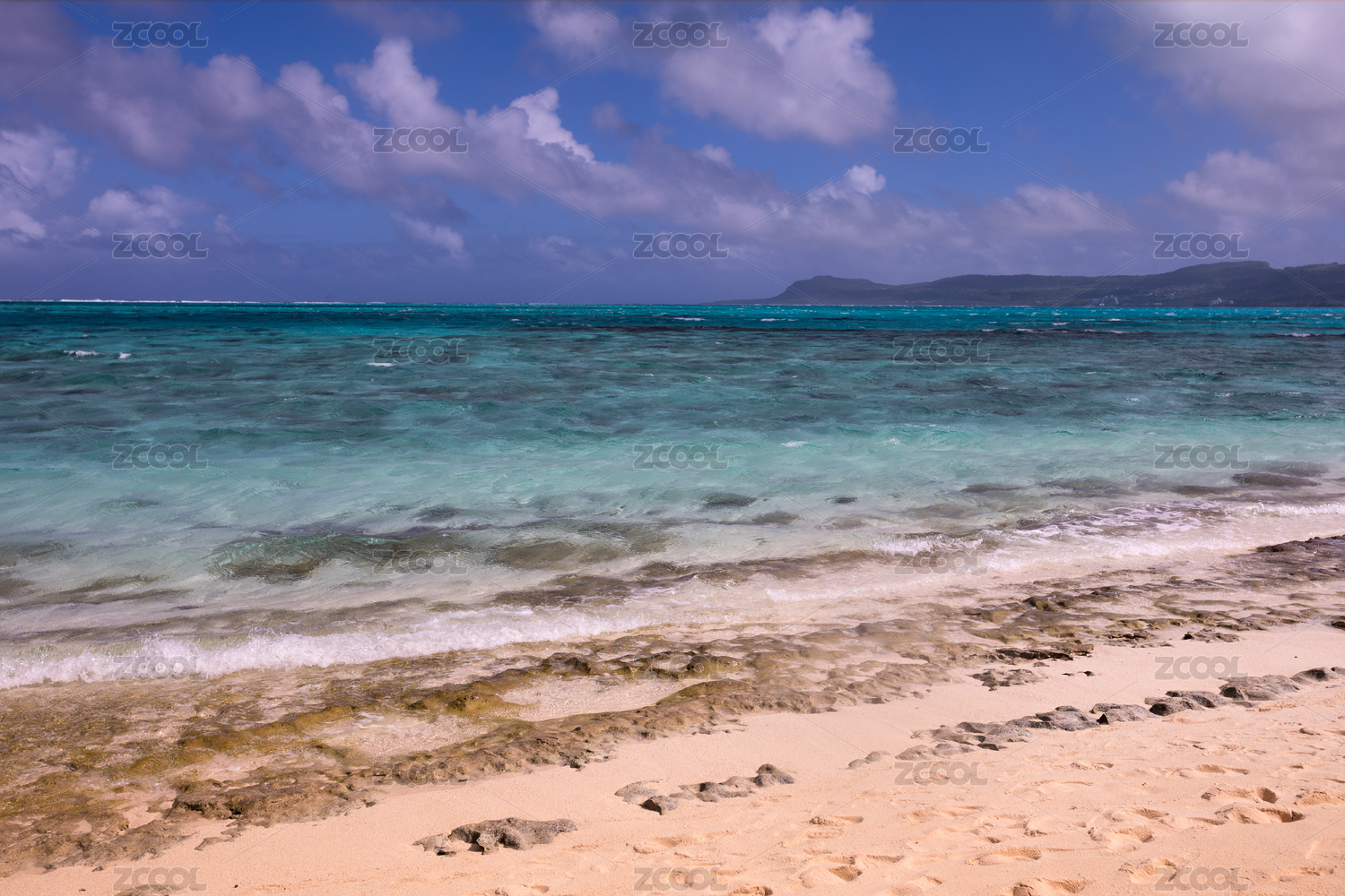 秋季白天美国塞班岛最高峰俯拍海岸线风光