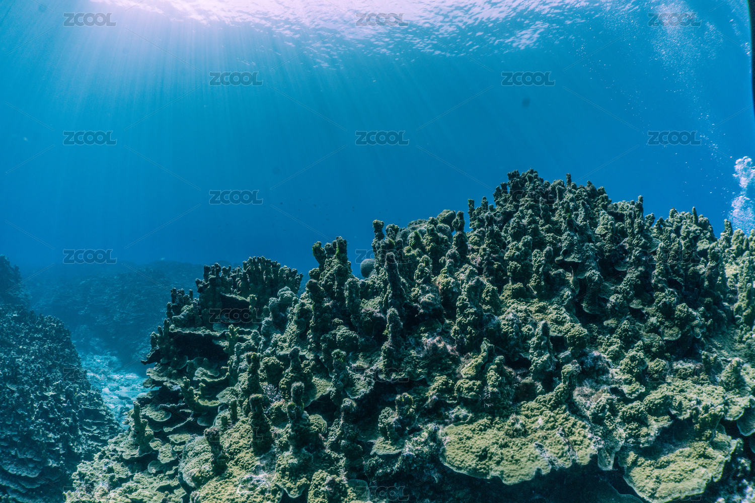 秋季白天美国塞班岛水下珊瑚礁与鱼群