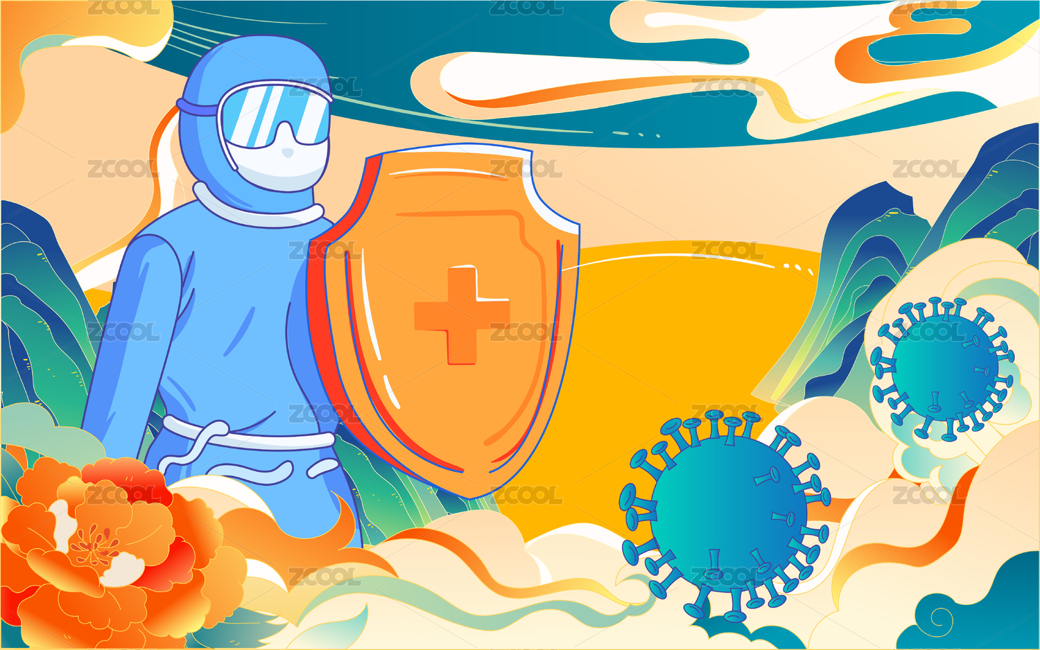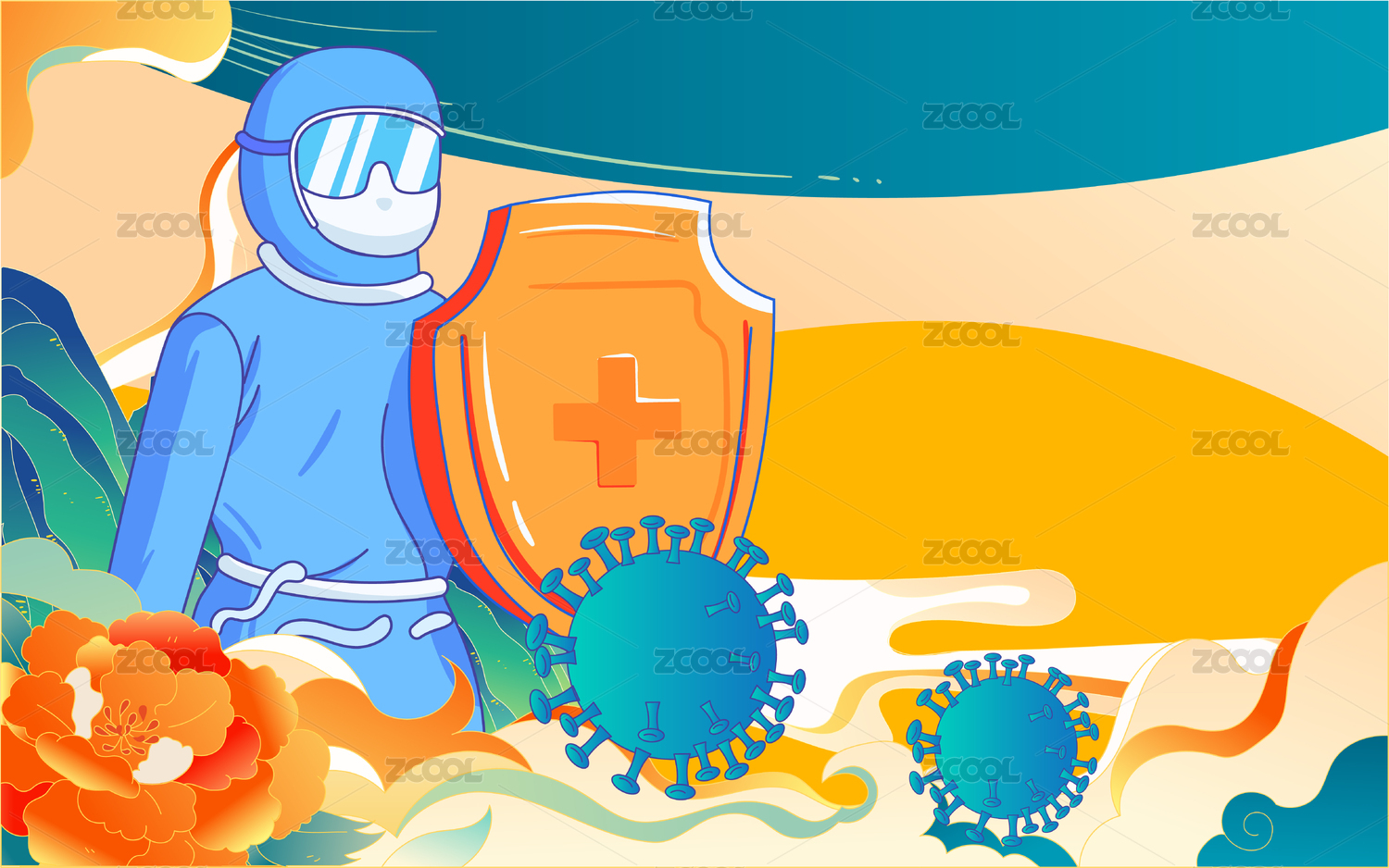 返岗复工防疫宣传海报节日疫情病毒防控插画