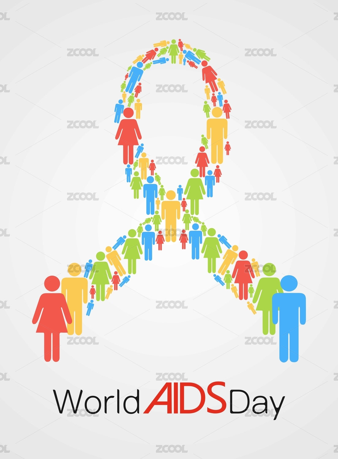 世界艾滋病日宣传海报。男人和女人组成的彩色缎带。医学概念。矢量插图。