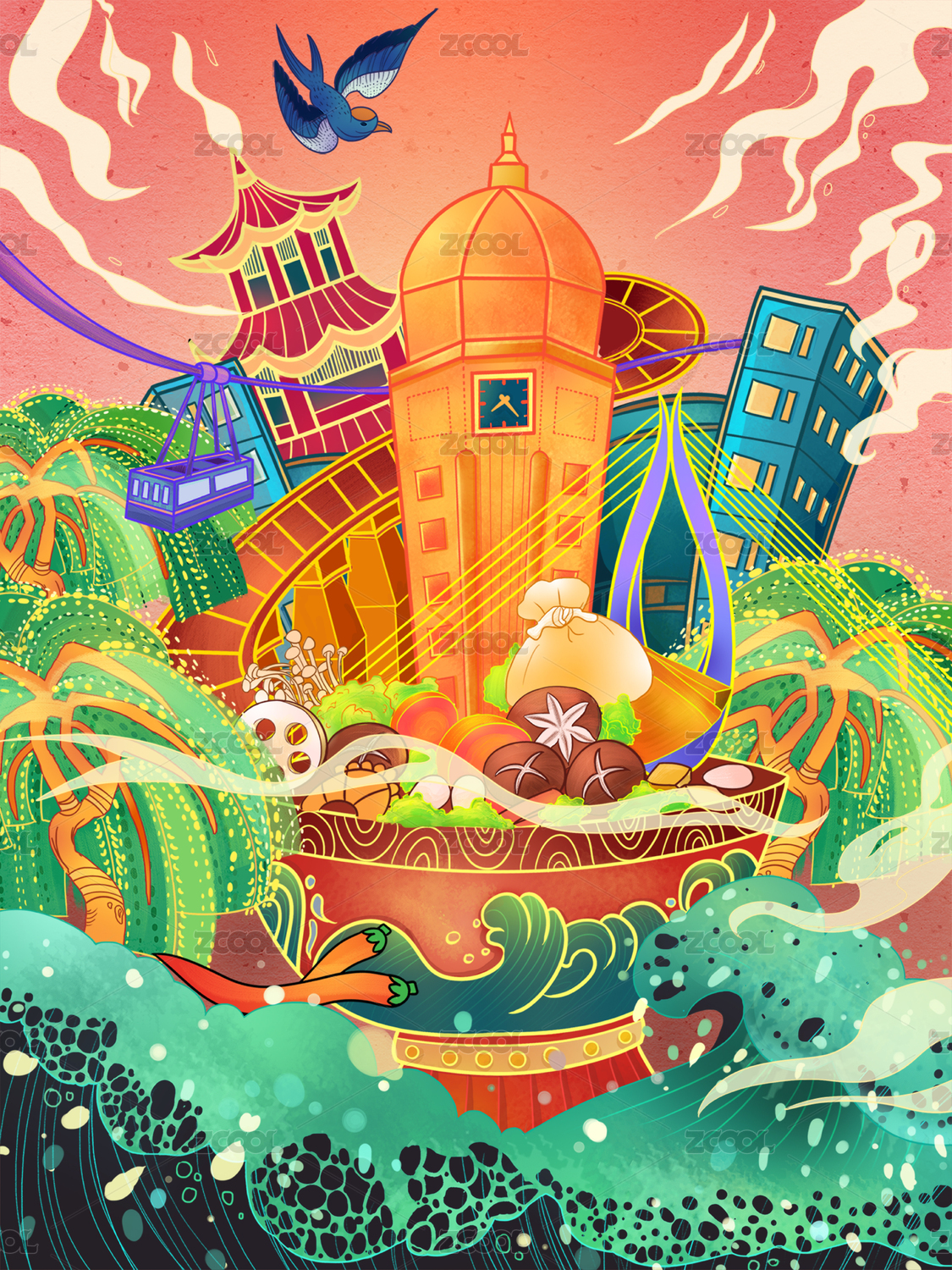 风镜烤鱼插画,店铺营销宣传海报,水彩风