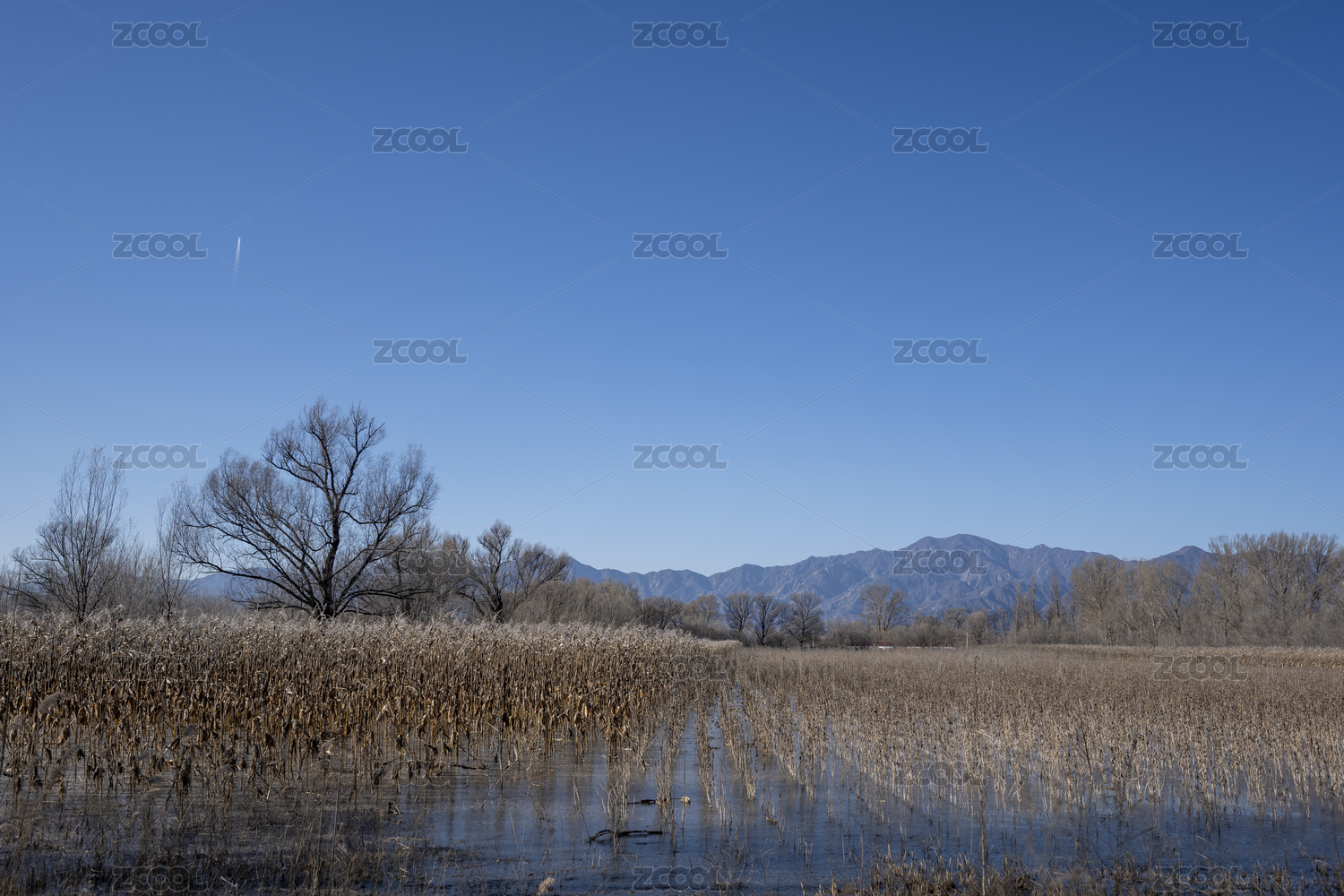 秋日湿地远山