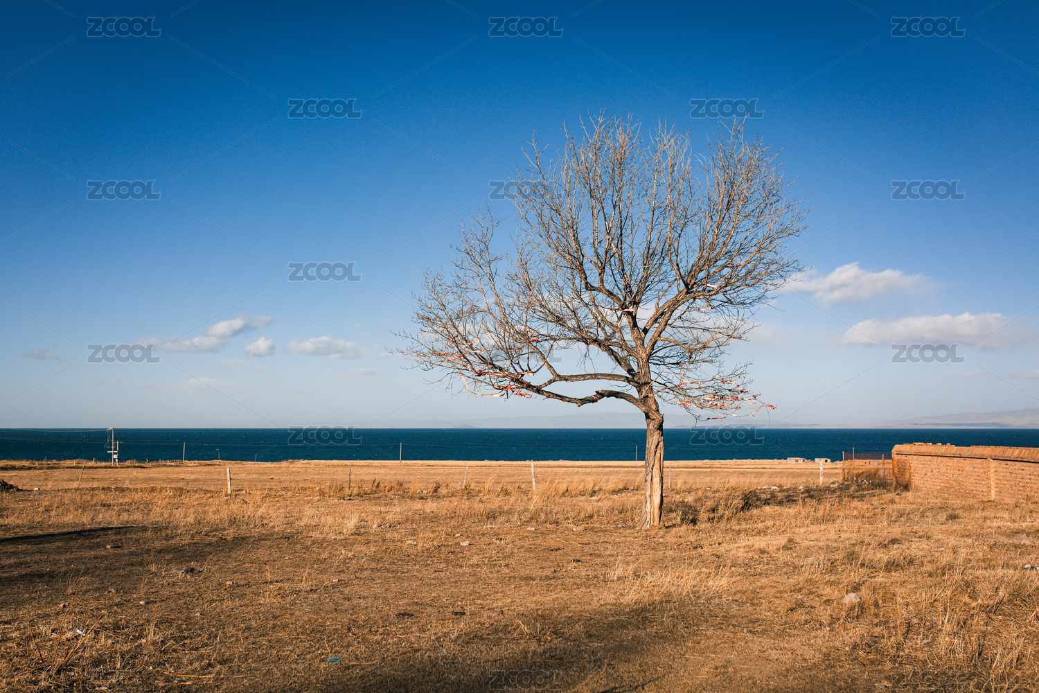 青海湖岸边的一棵枯树