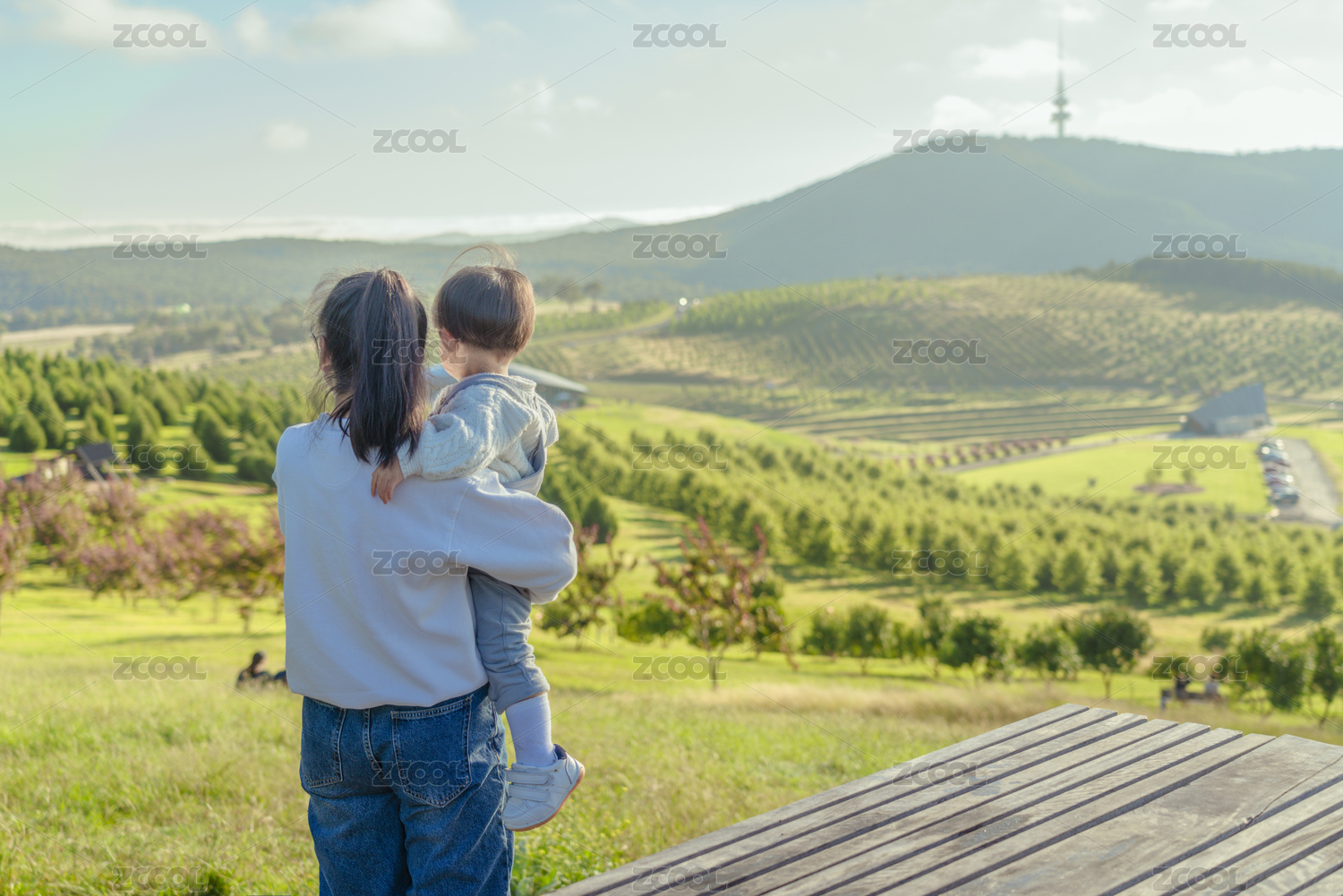 山谷旷野里的小男孩与妈妈在一起
