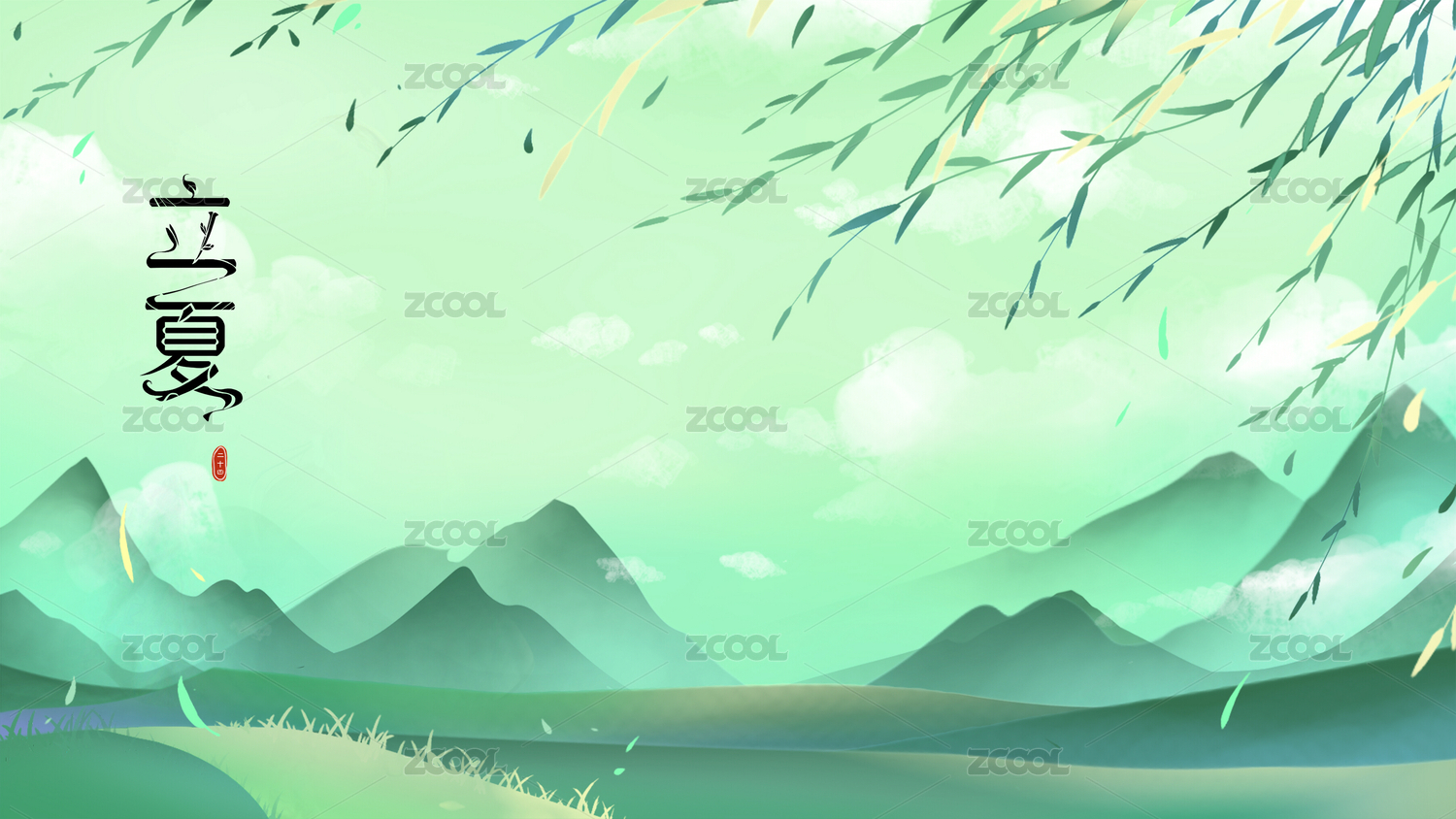 立夏时节青山旷野柳叶繁茂的飘荡着