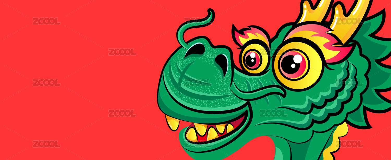 新年龙年可爱卡通龙剪纸风格中国龙吉祥物