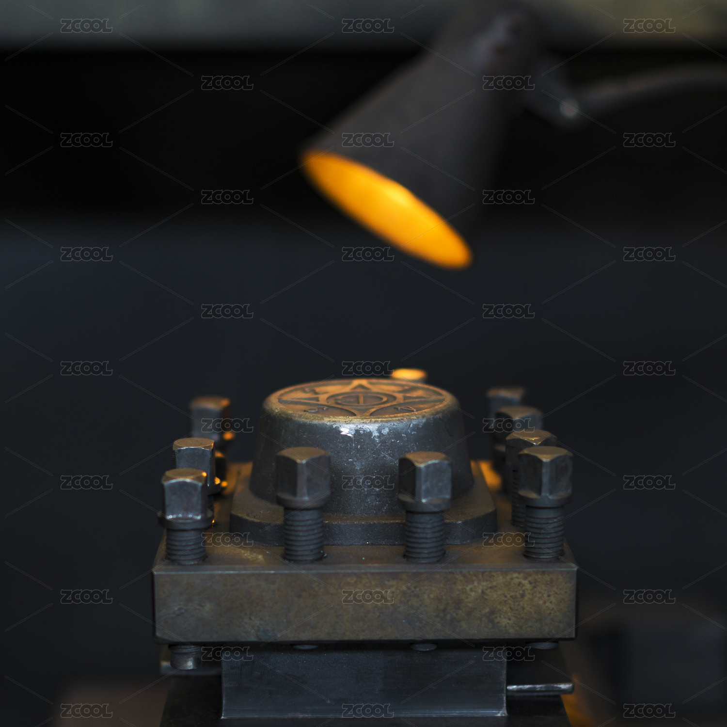 车间内一盏昏黄的灯照在一个满是螺帽的零件