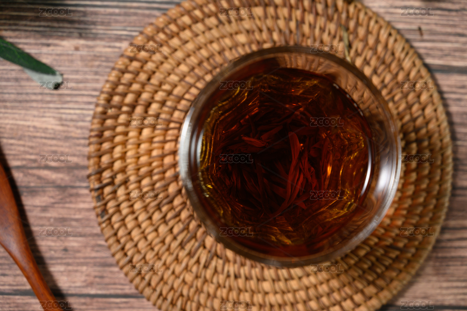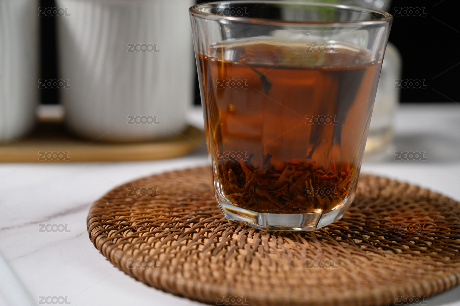 桌面上的杯子里的美味可口的滇红金针茶