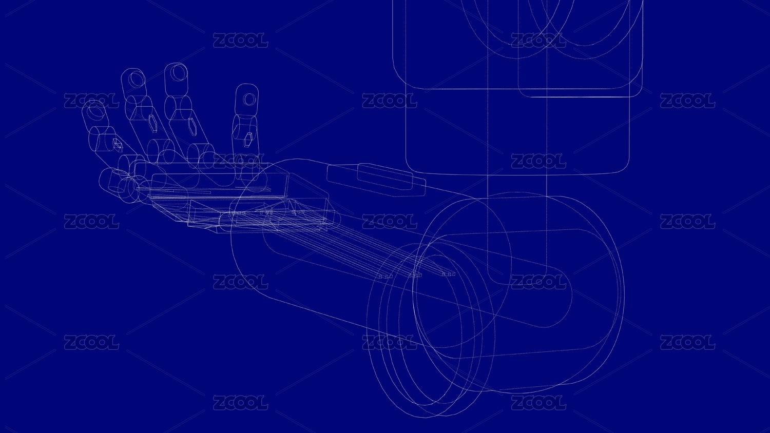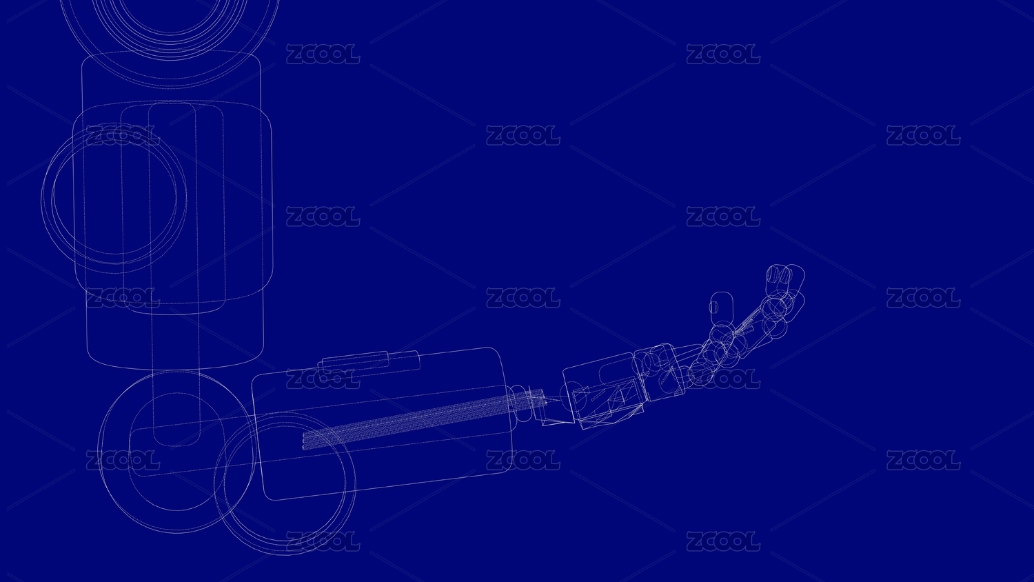 蓝色背景上的机器人手臂线框图