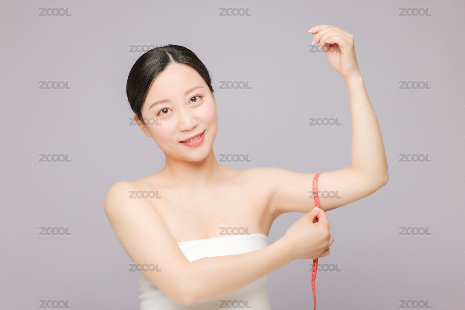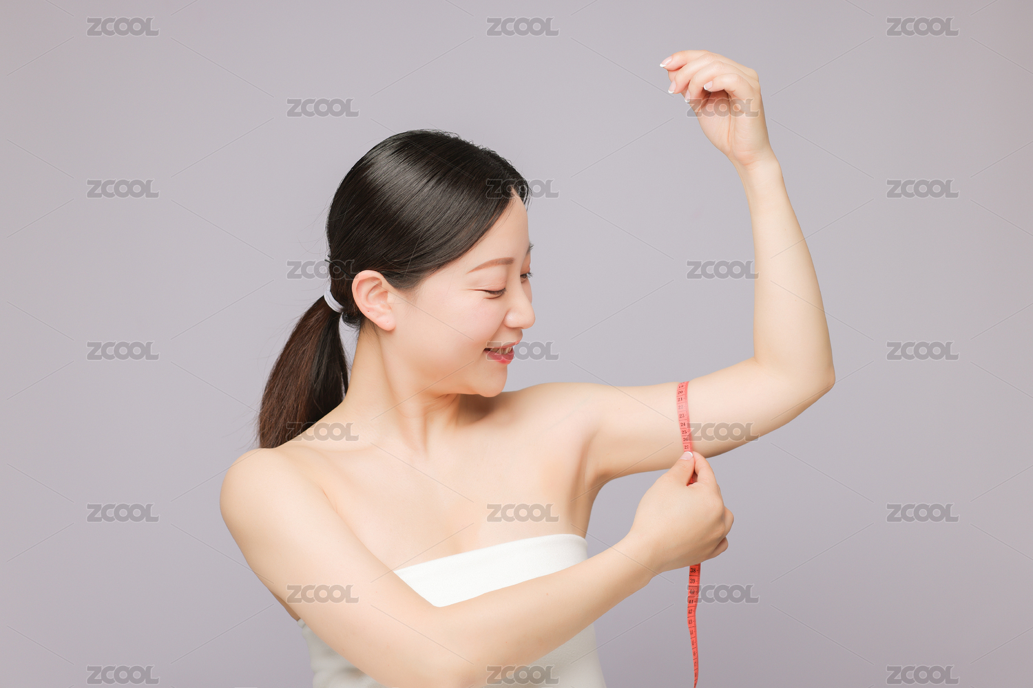用卷尺量手臂围度的年轻女生