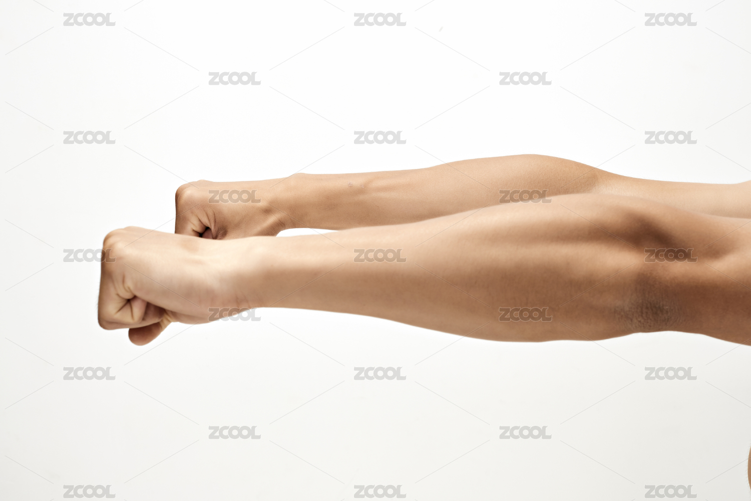 白色背景下的伸展手臂肌肉特写