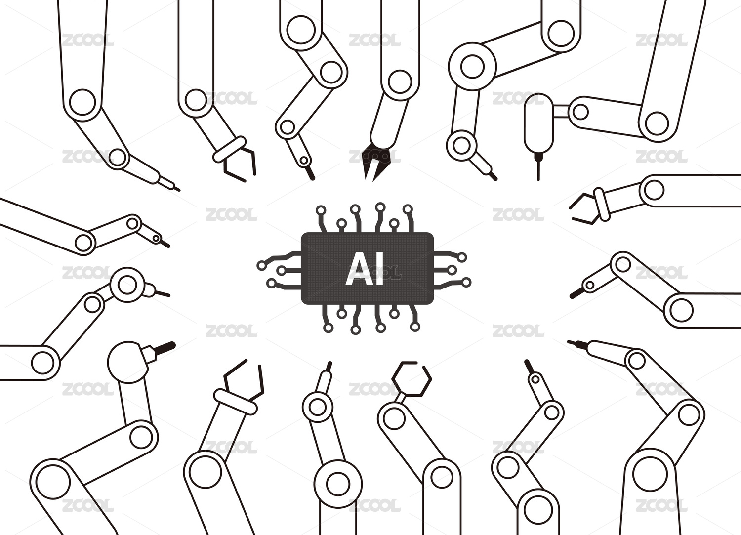 人工智能与各种工业机器人机器手臂图标