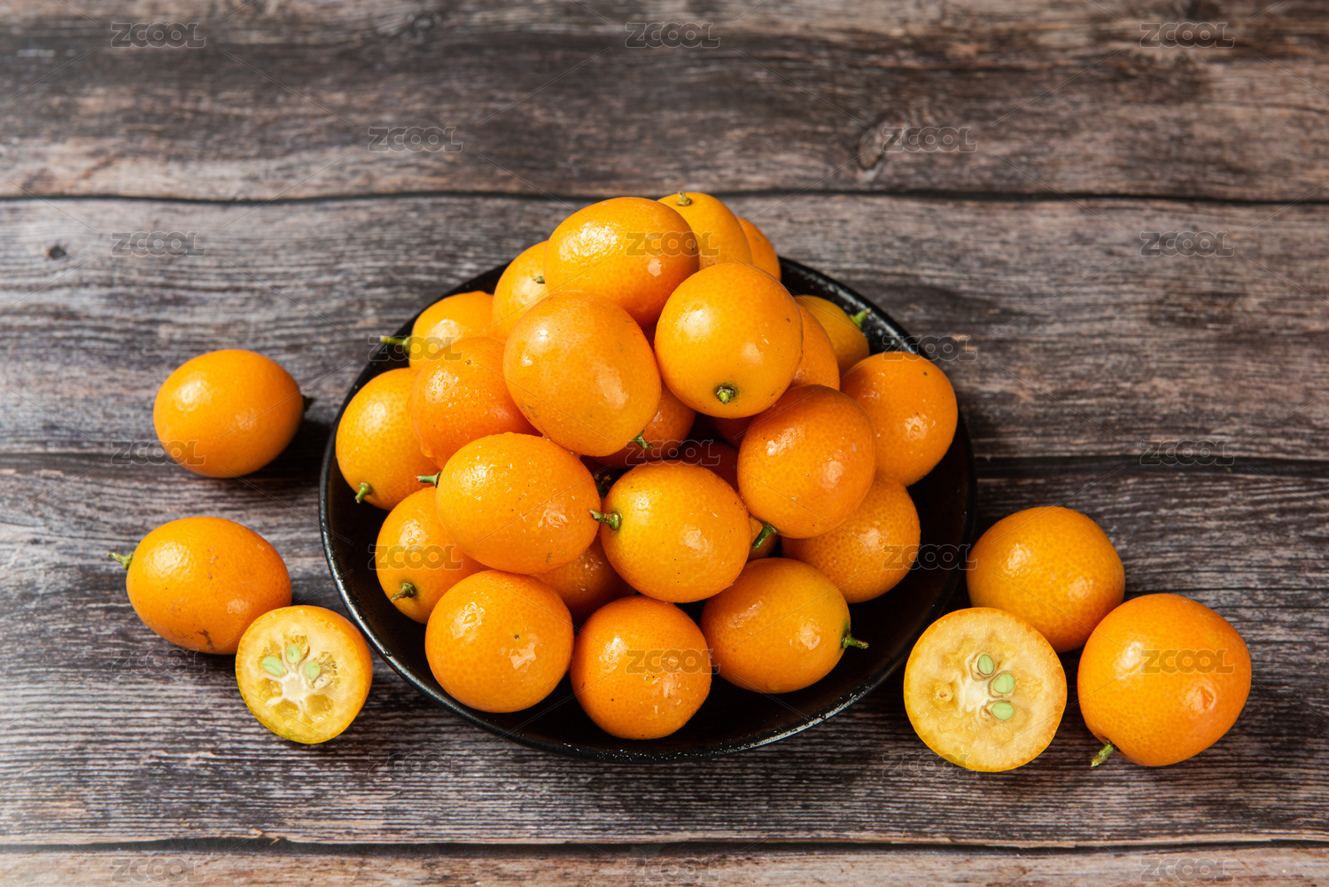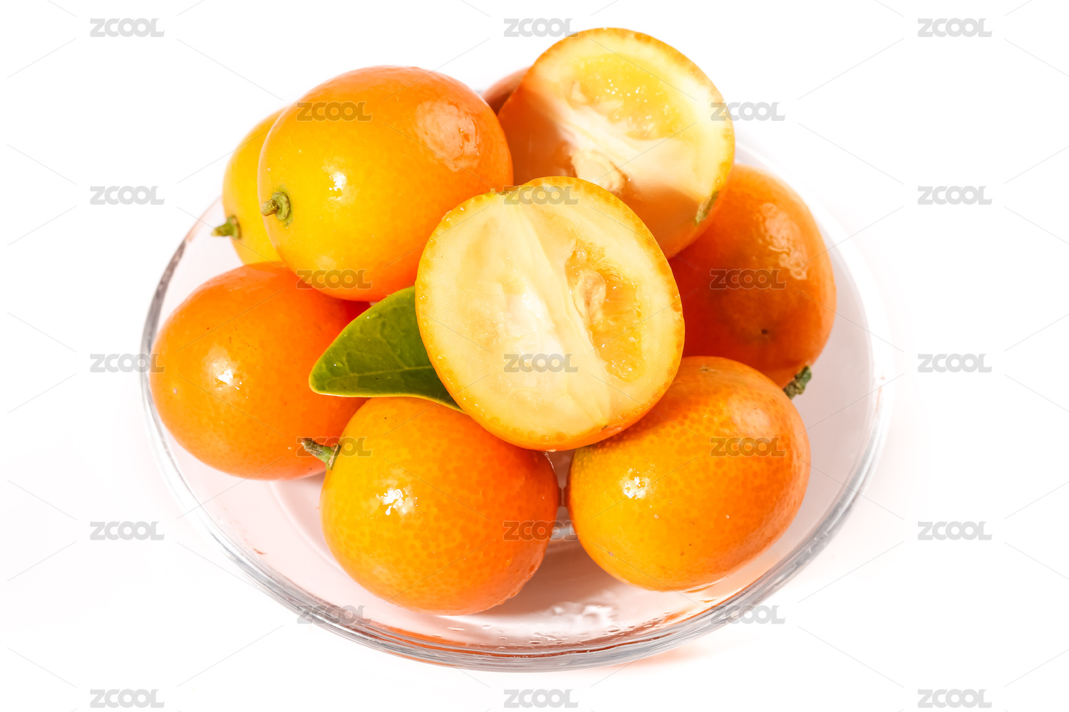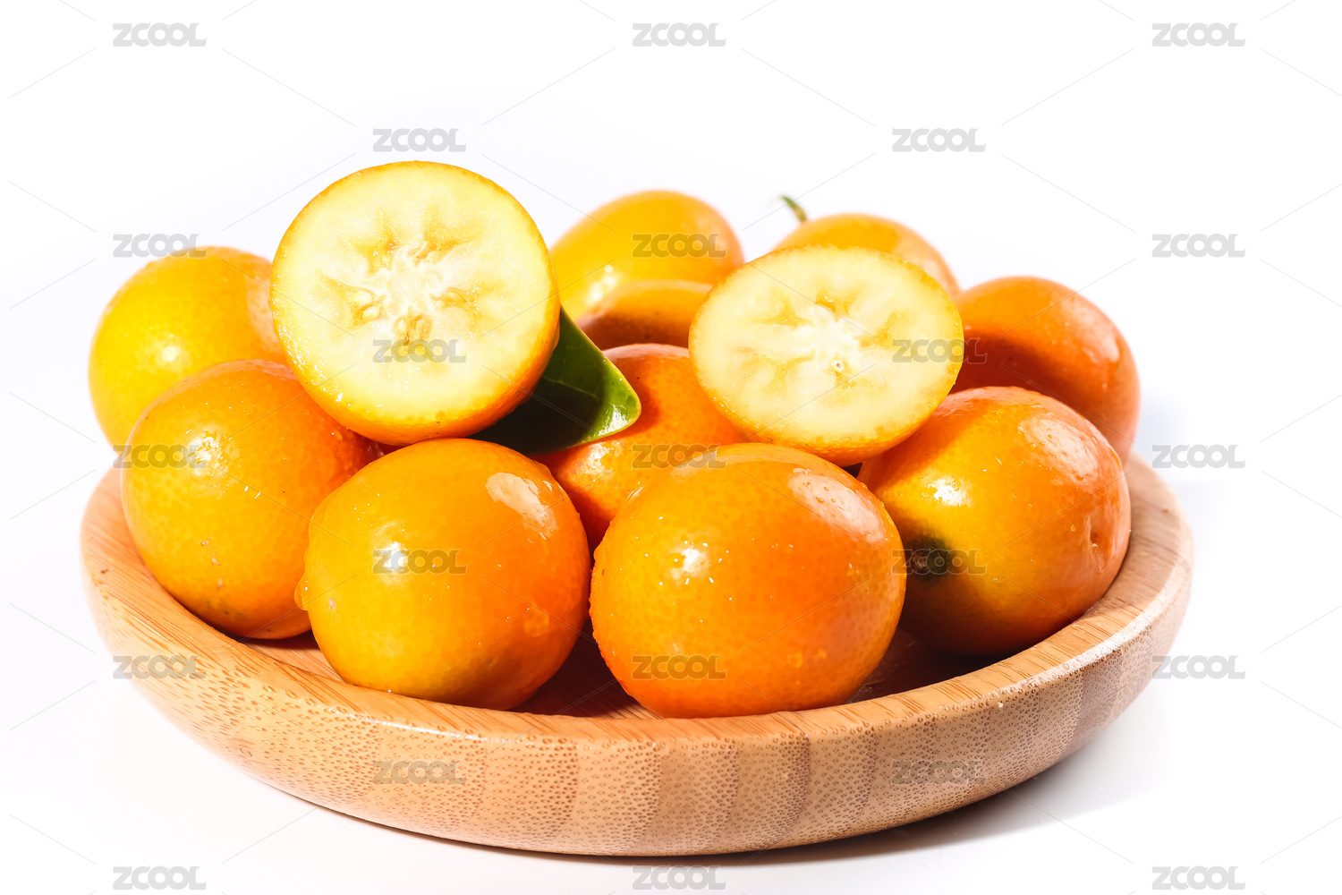 白色背景下的一盘金桔金橘脆皮桔,棚拍水果