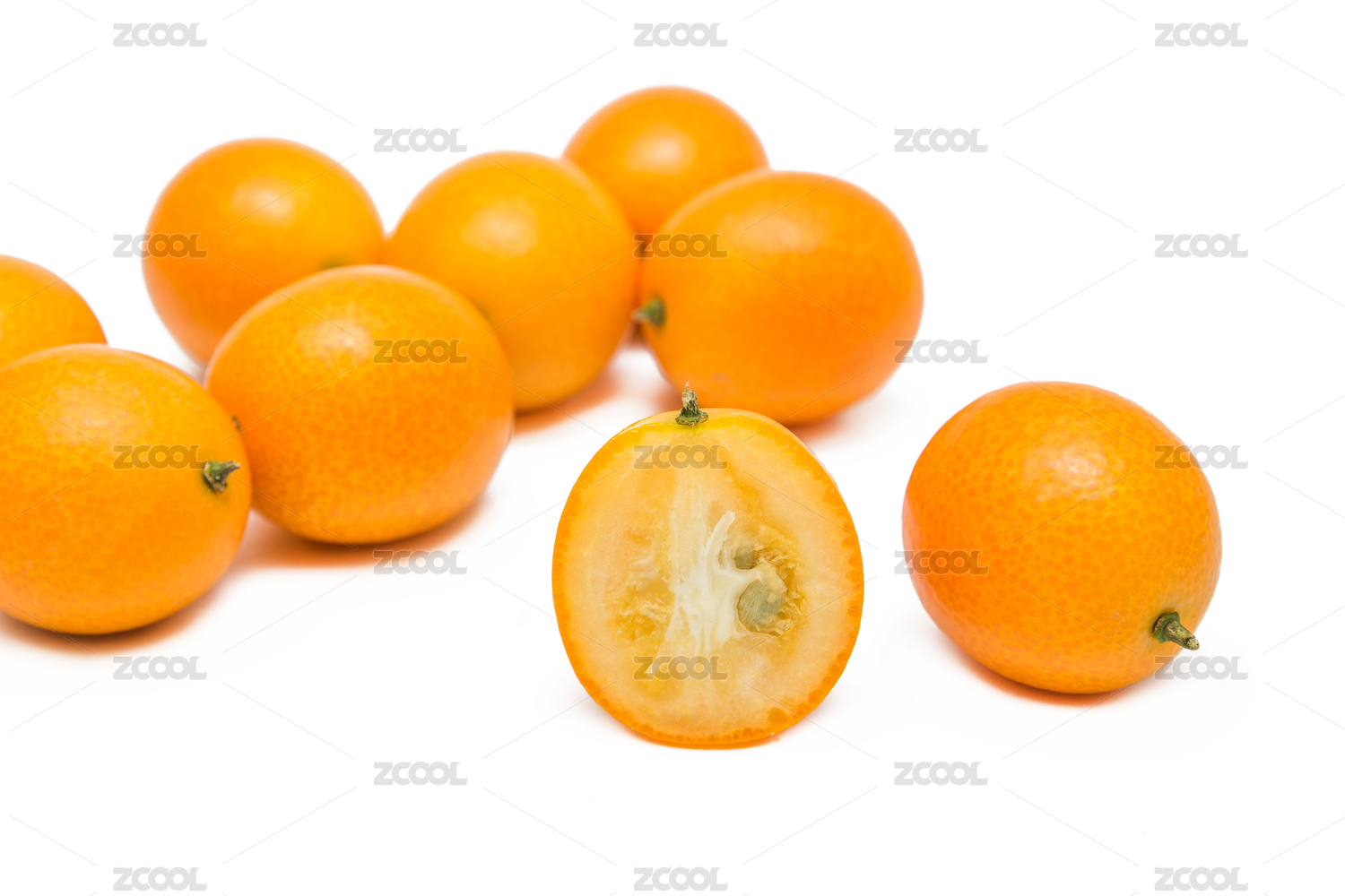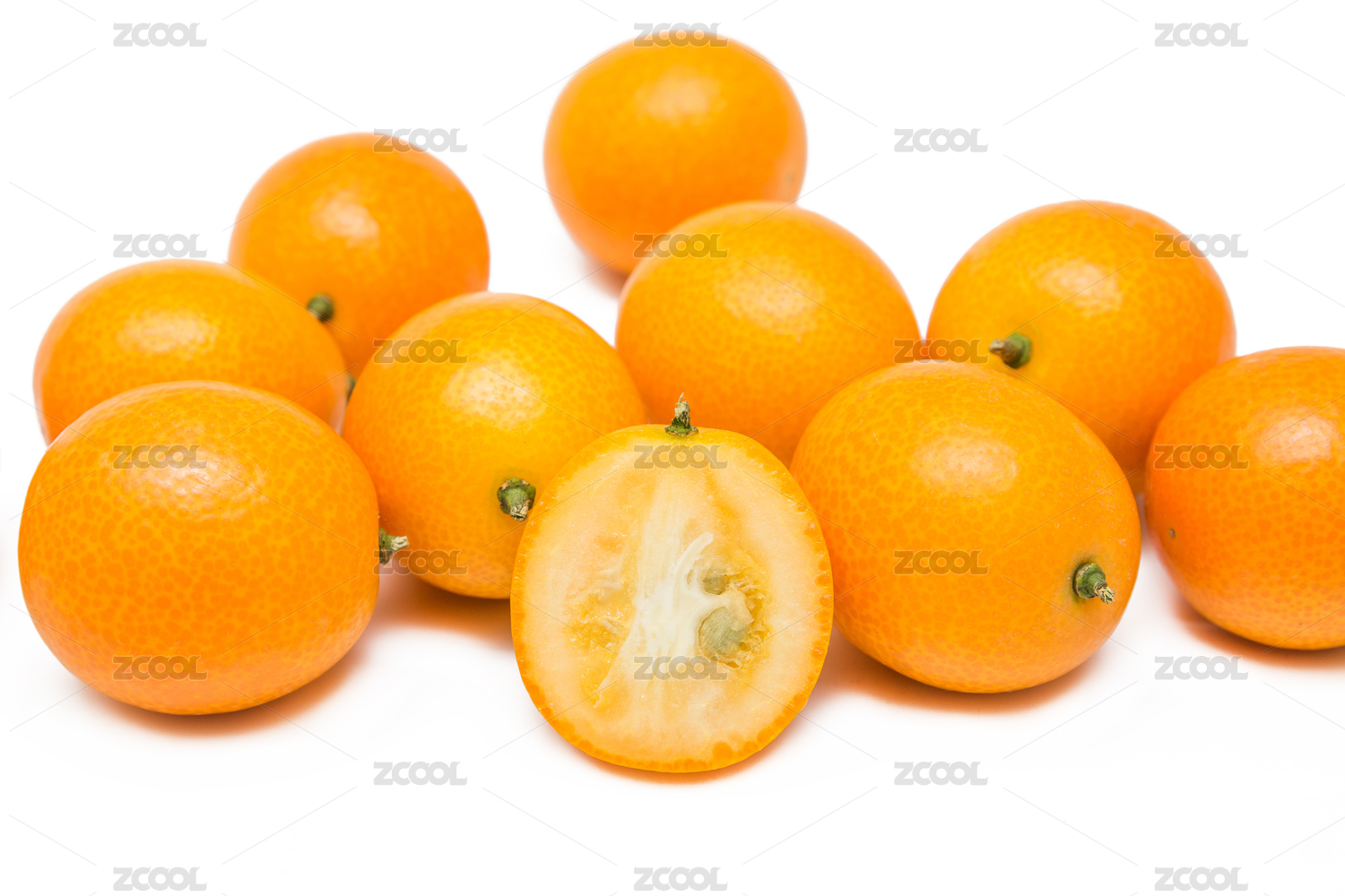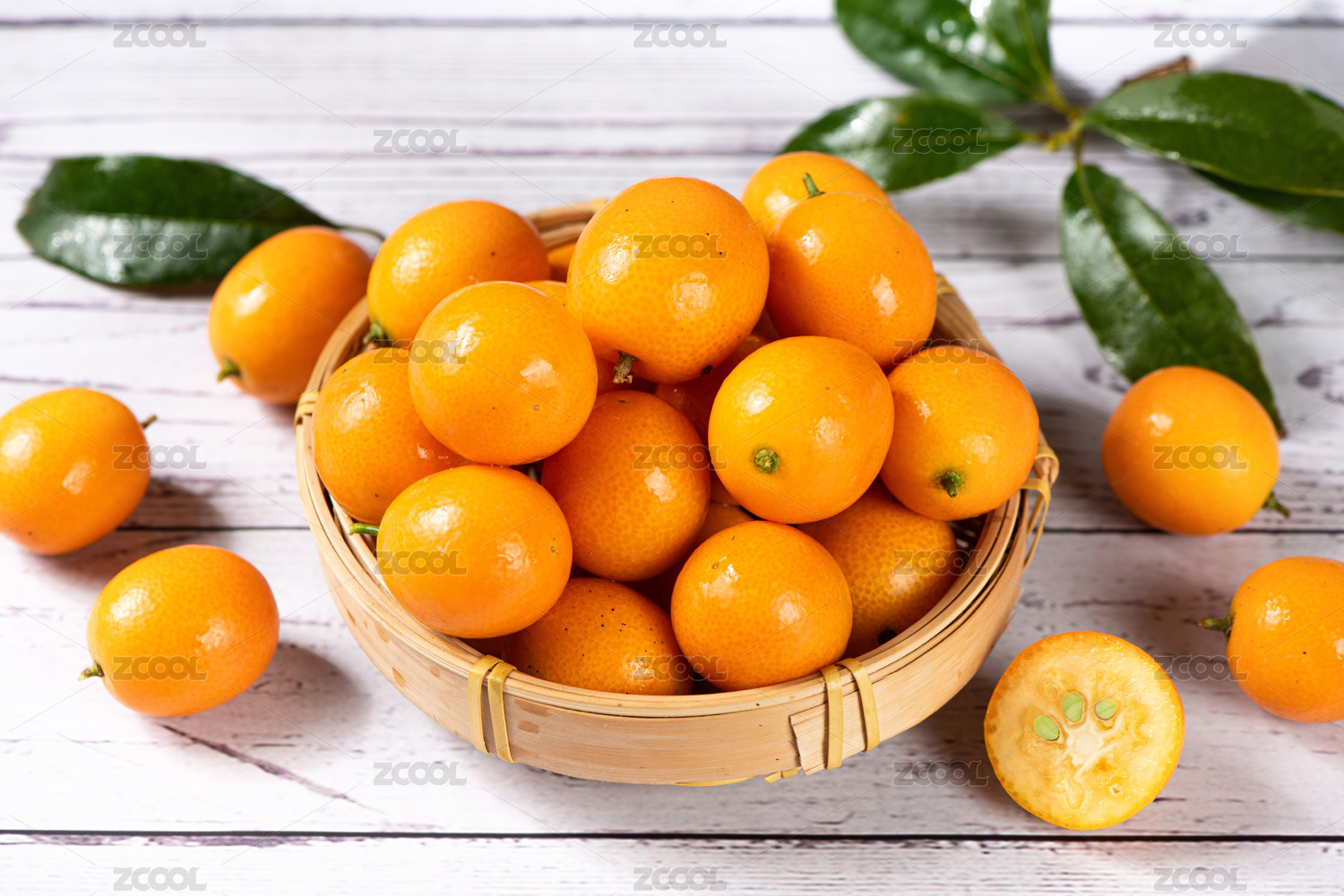 白色背景下的一盘金桔金橘脆皮桔,棚拍水果
