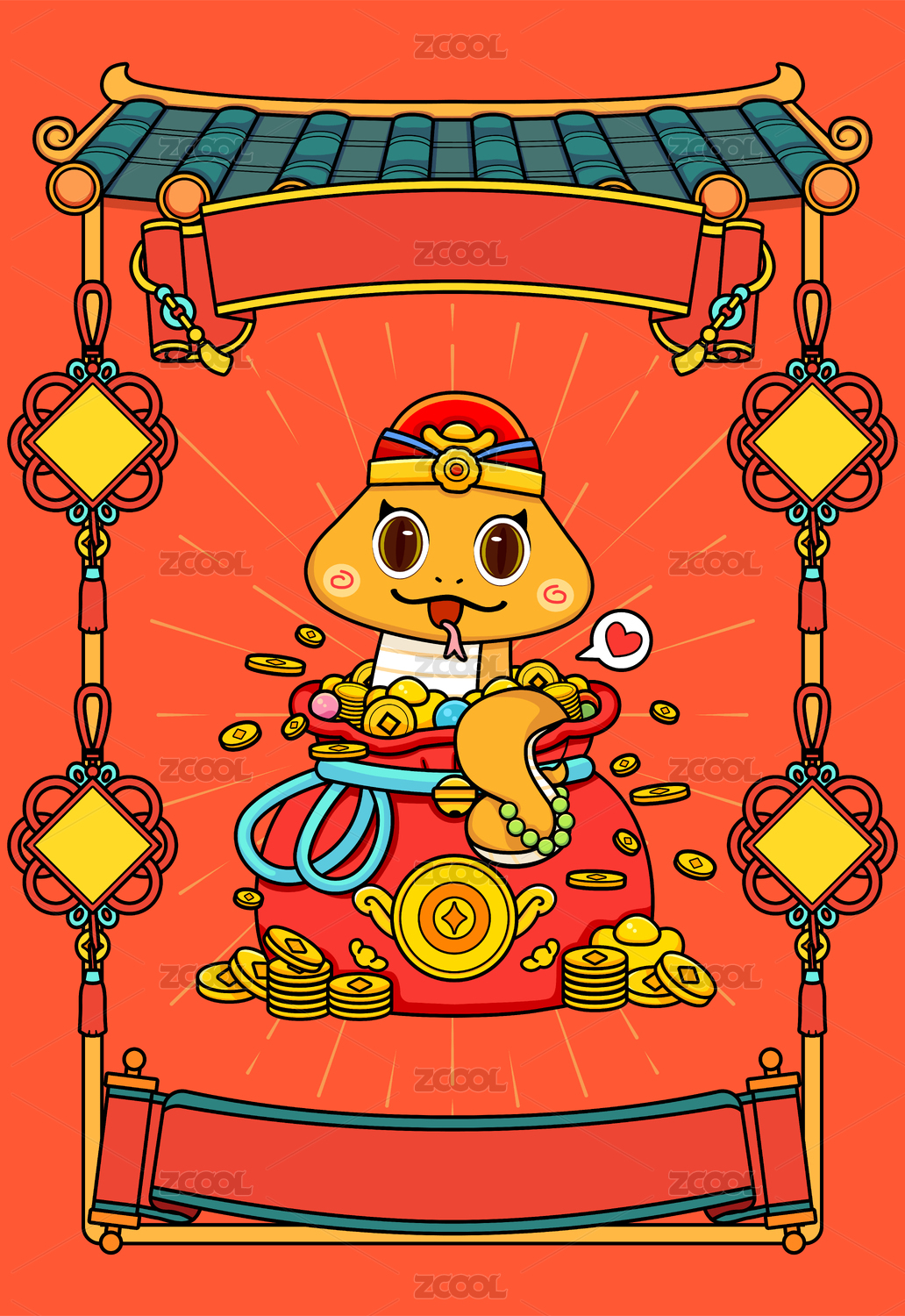 蛇年插画福气满满