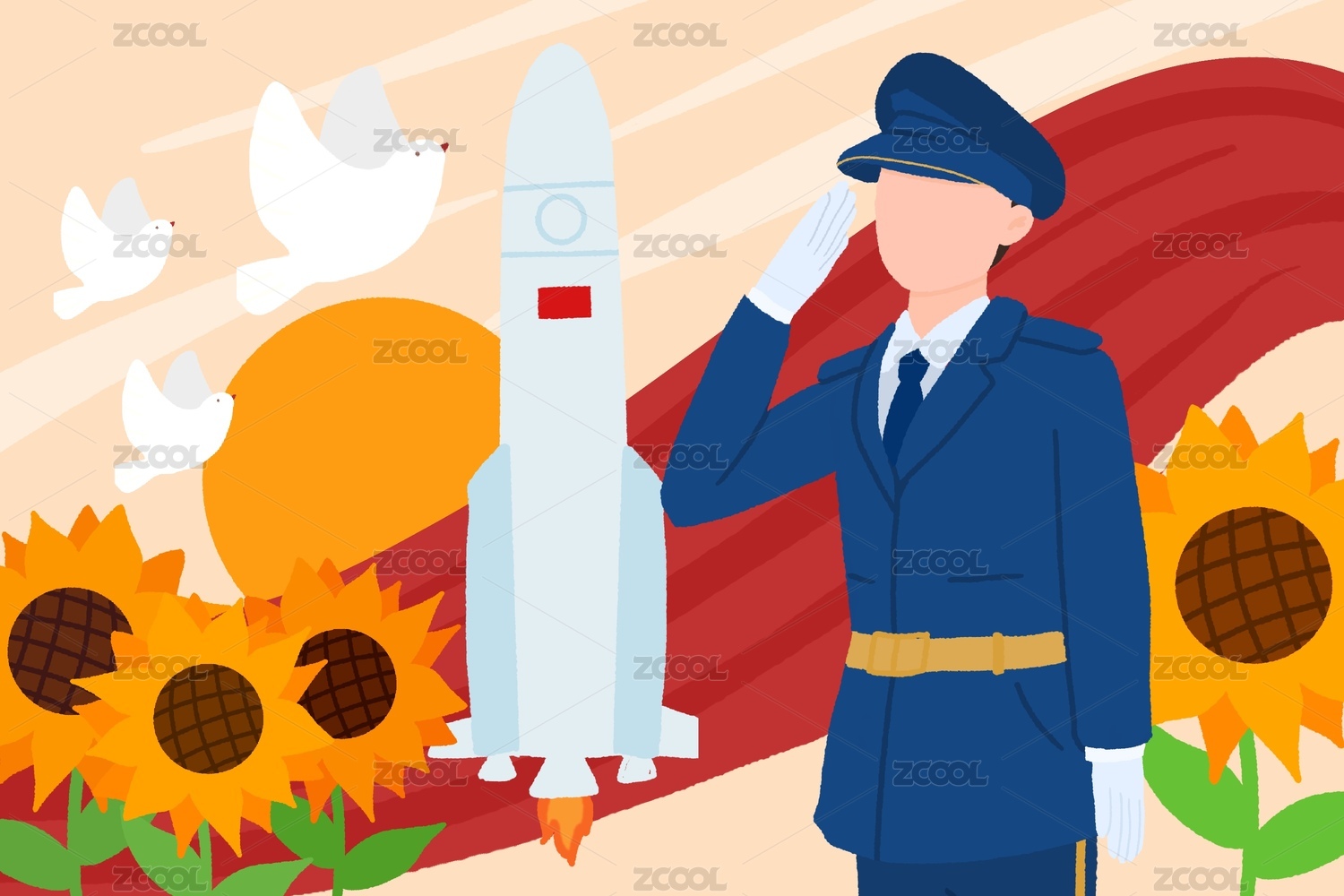 军人男生职业特征代表原创插画装饰人物