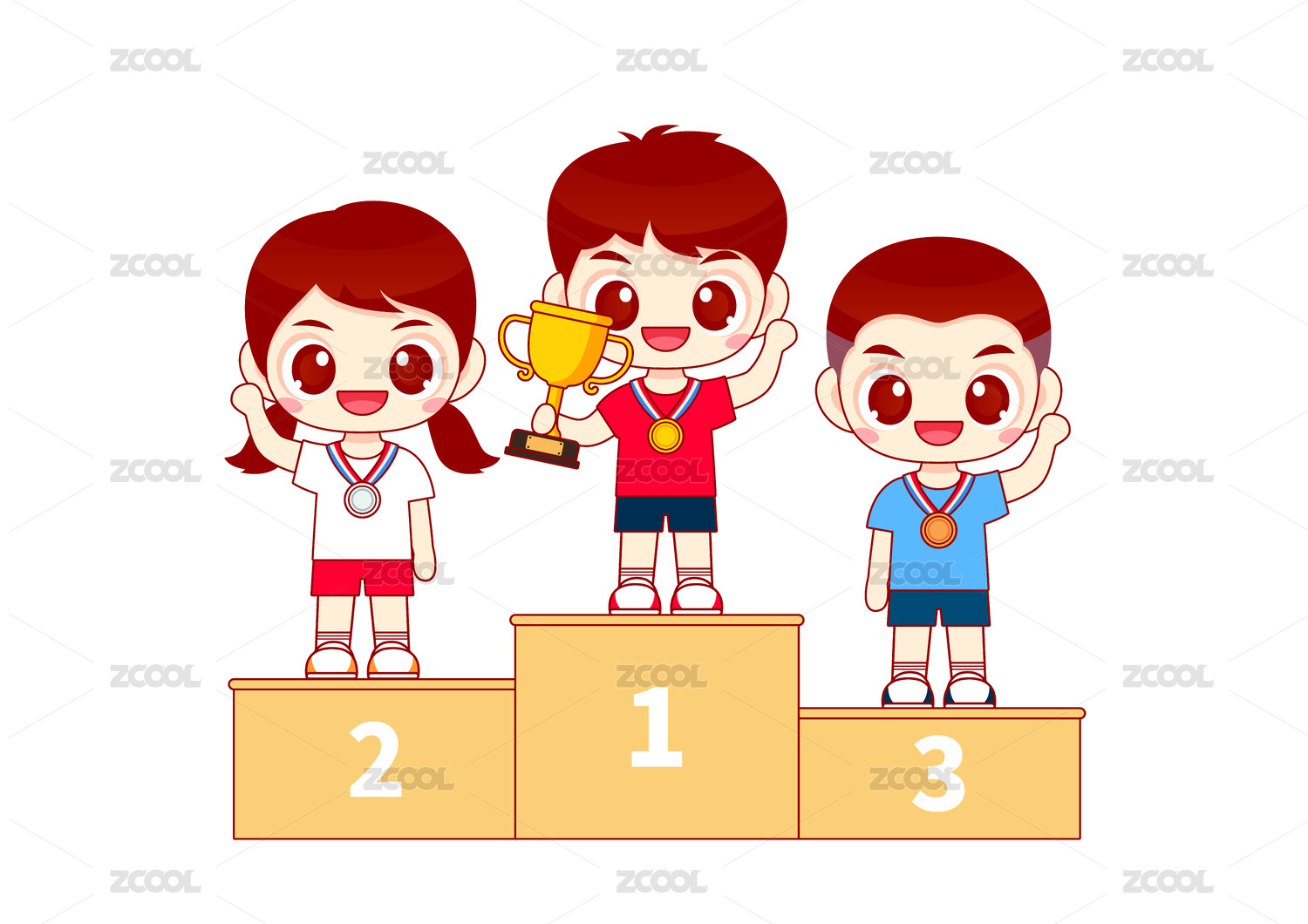 卡通矢量领奖台冠军人物