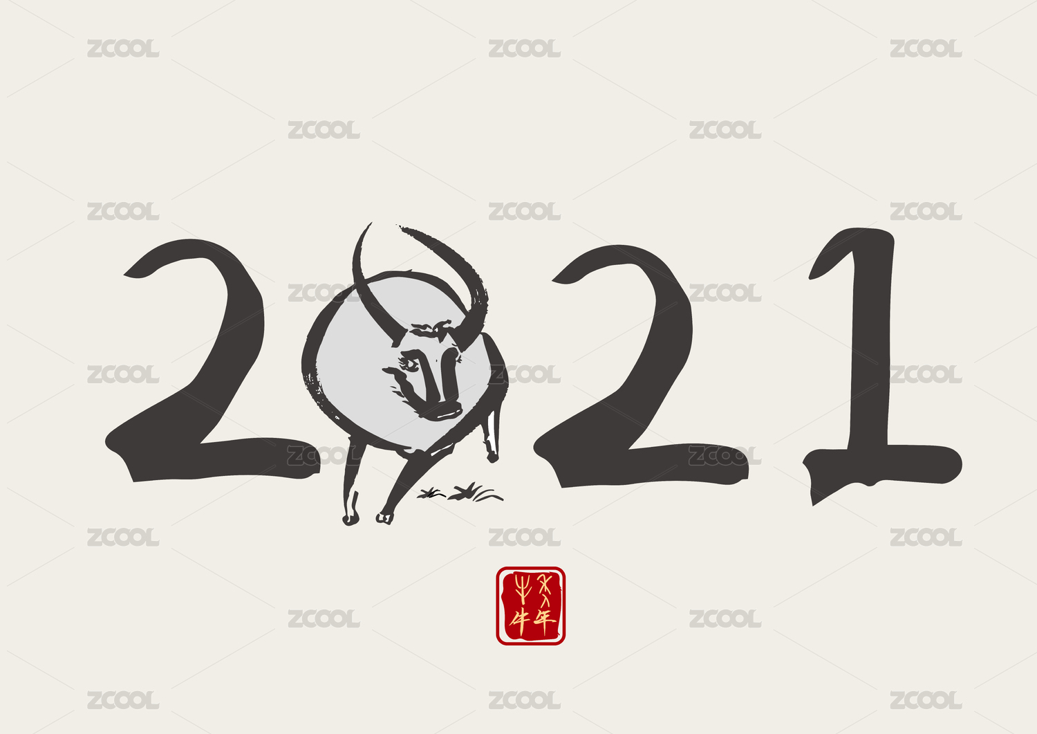 2021牛年新年手写文字海报
