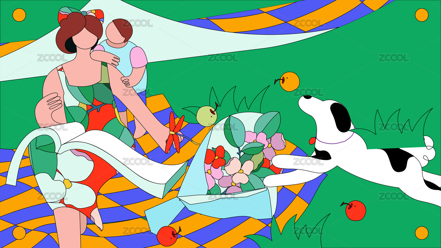 母亲节露营野餐亲子矢量插画节日活动视觉