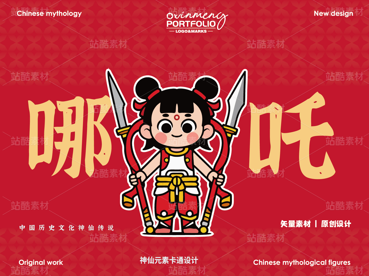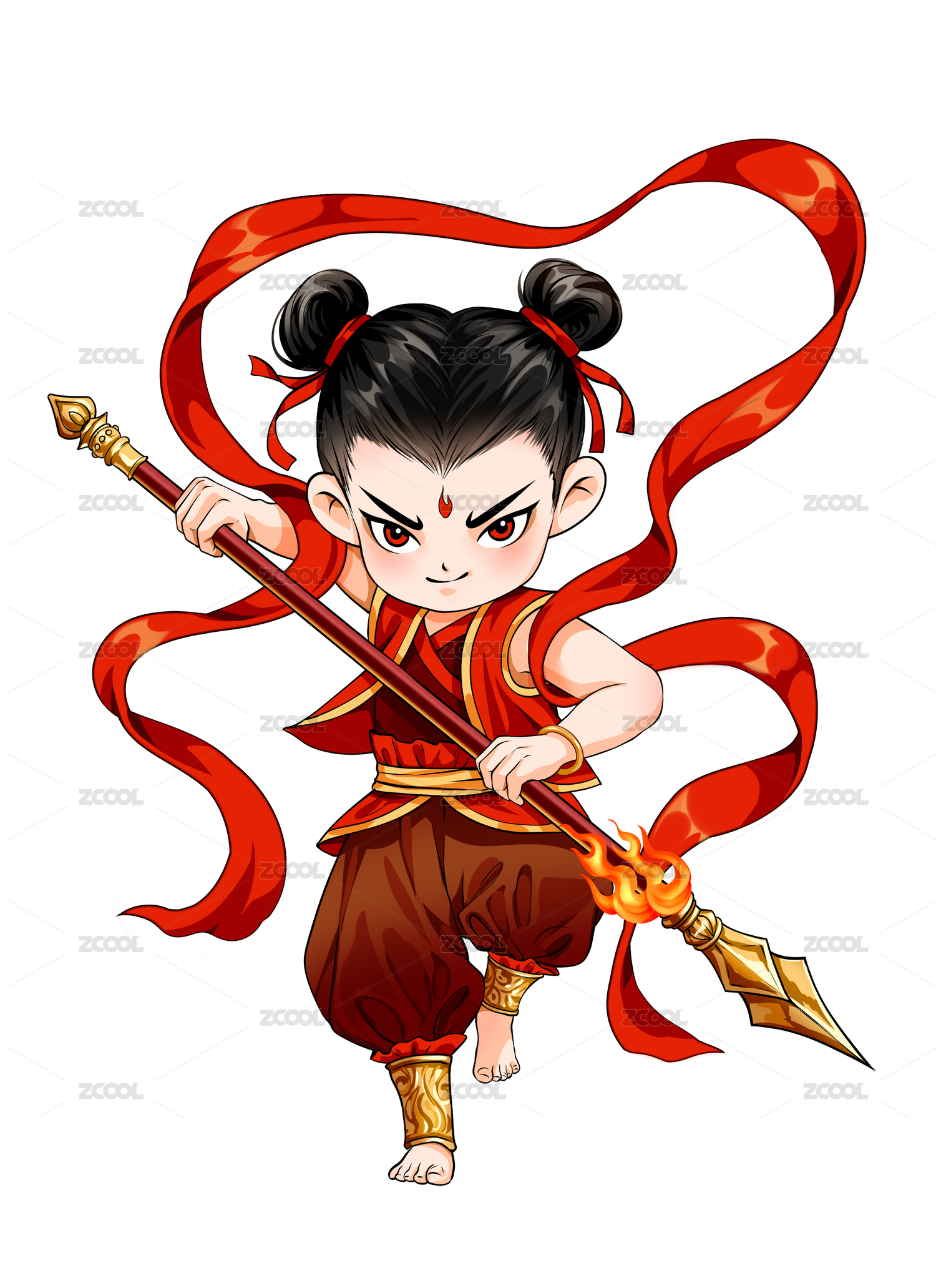 手绘哪吒神话人物中国神话封神榜免扣