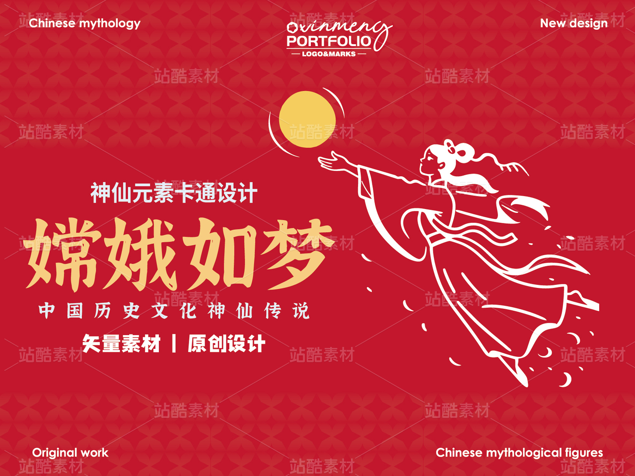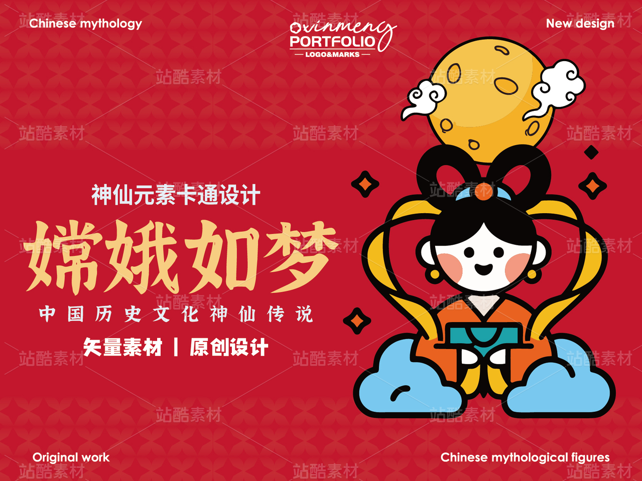 矢量中国神话故事山海经可爱国潮中秋节嫦娥