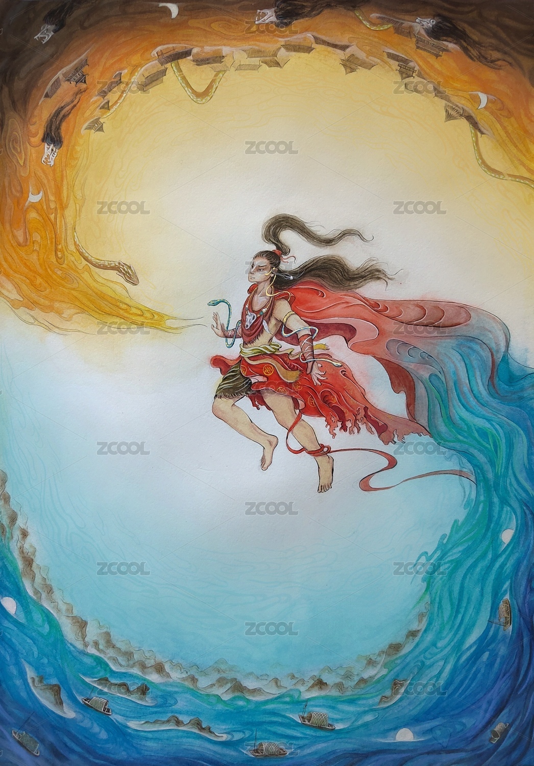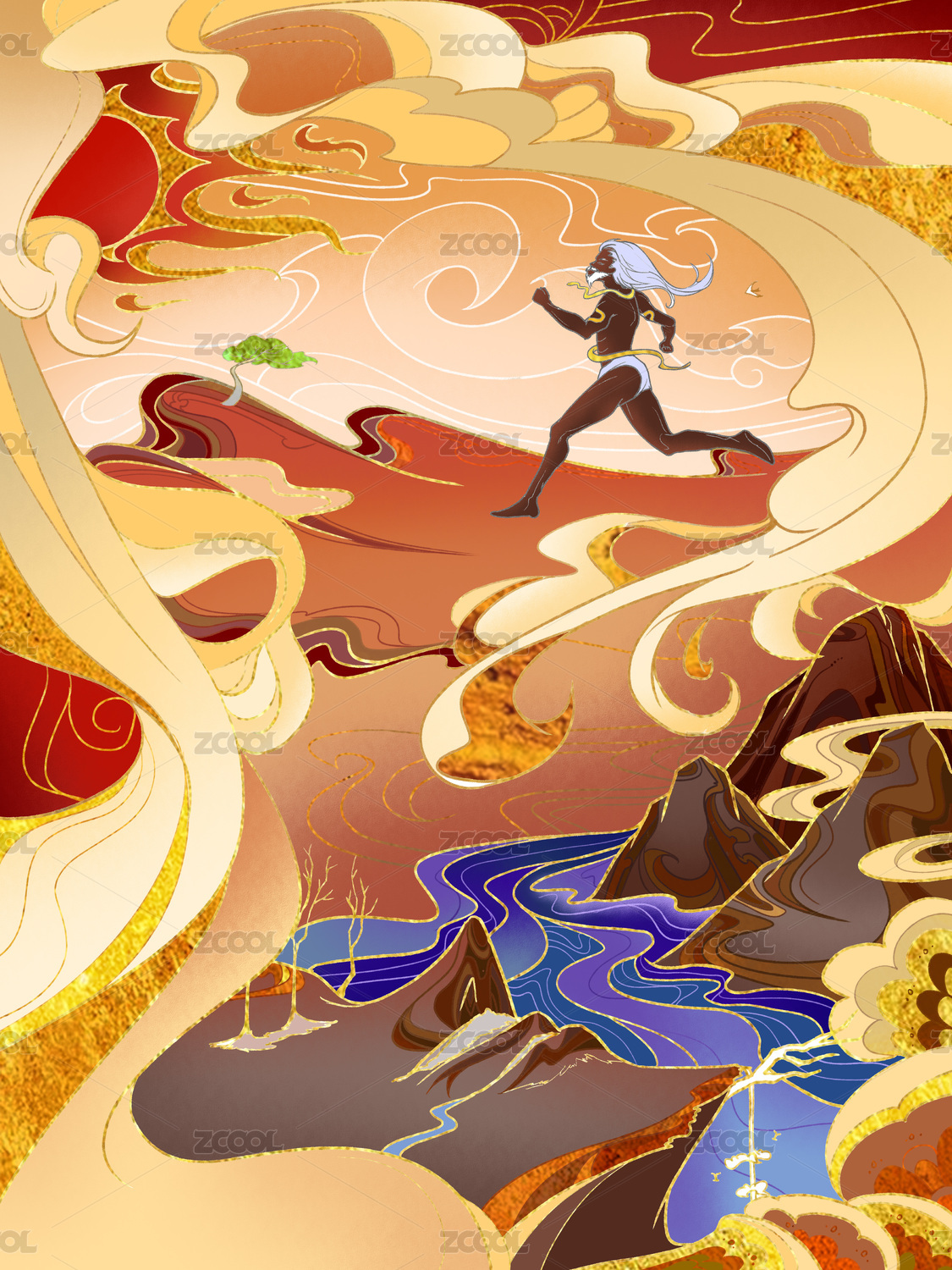 山海经之夸父中国风商业插画