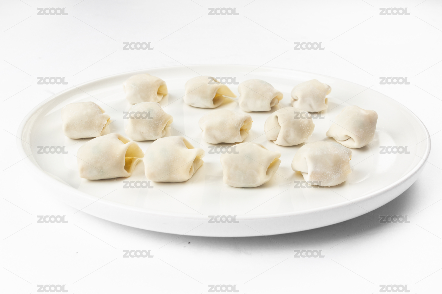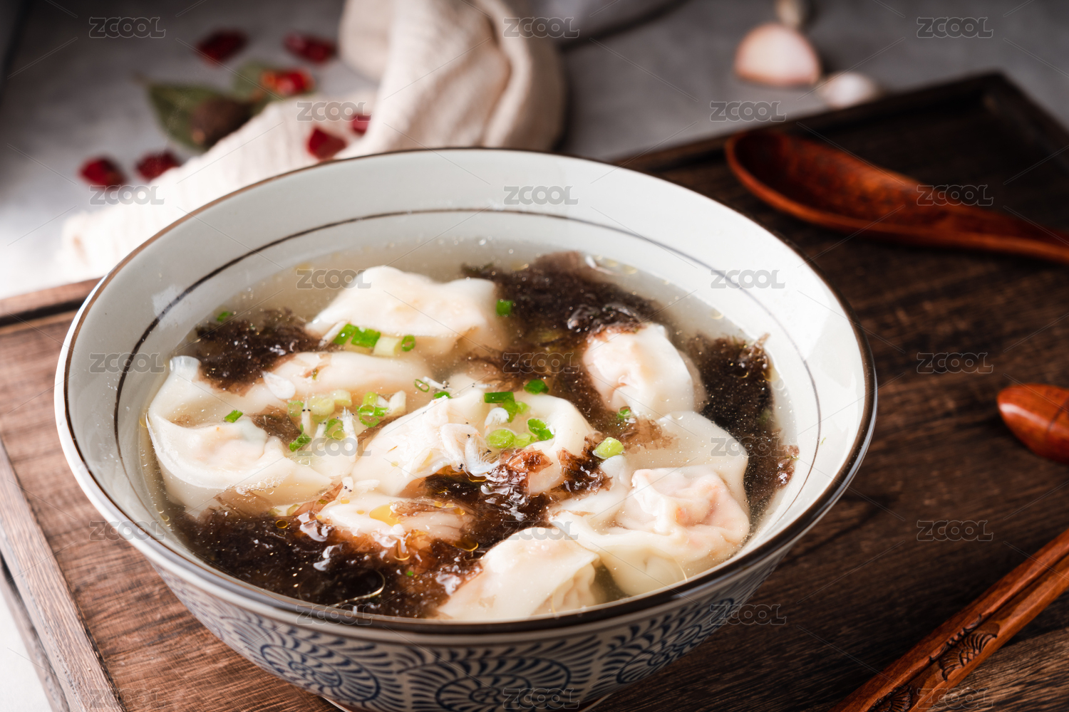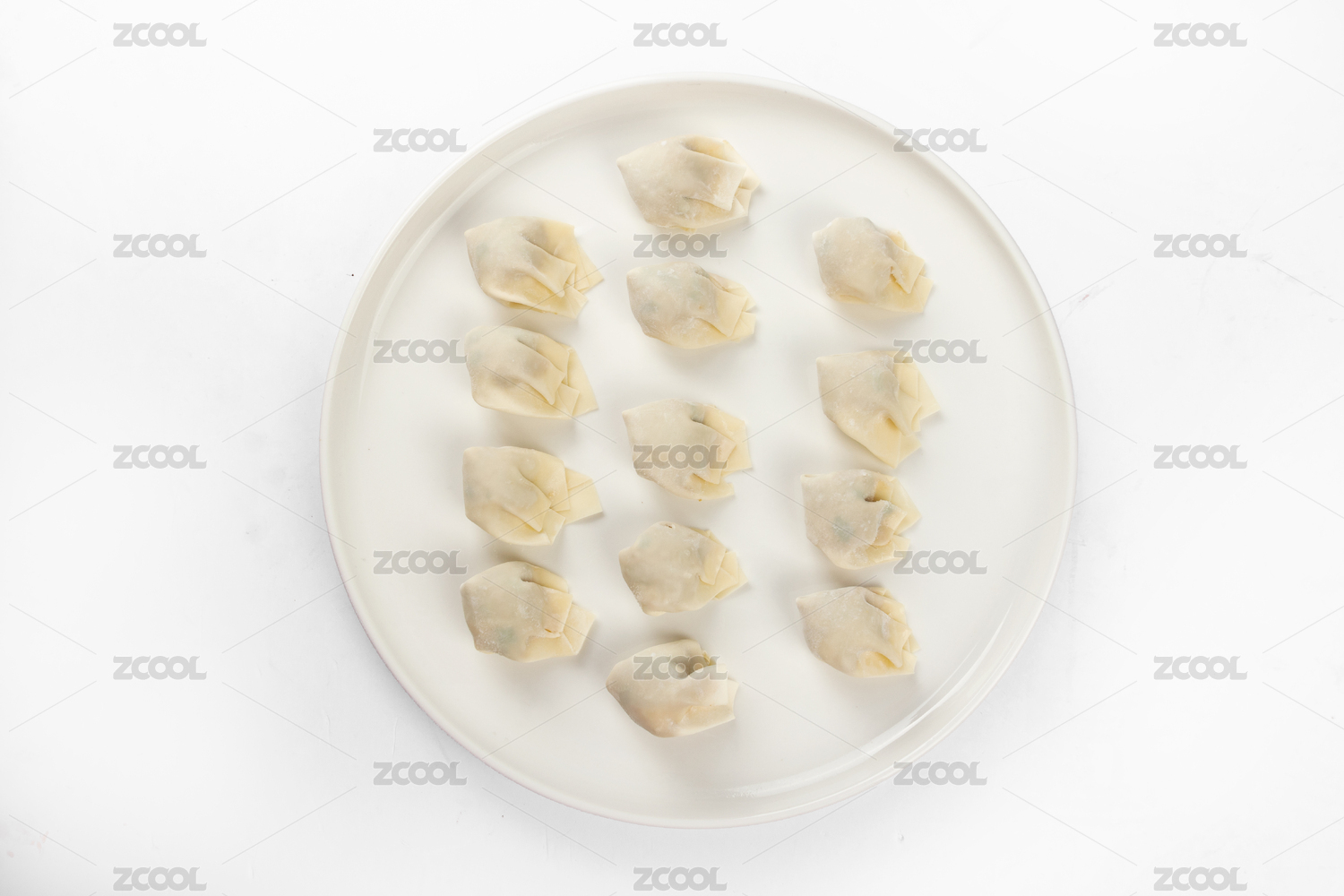 手拿筷子夹韭菜猪肉馅准备放在馄炖皮上包馄炖