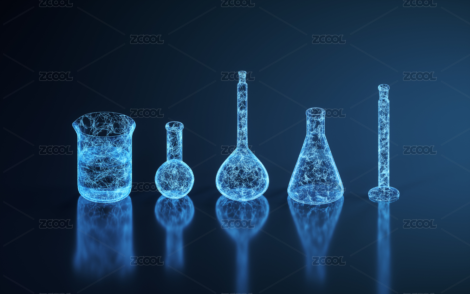 蓝色线条结构化学仪器 3D渲染