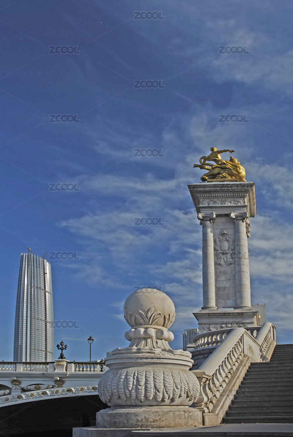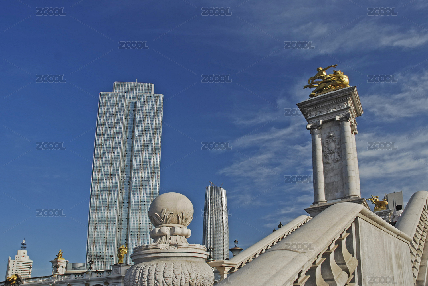 中国天津市海河北安桥及桥头白虎雕塑