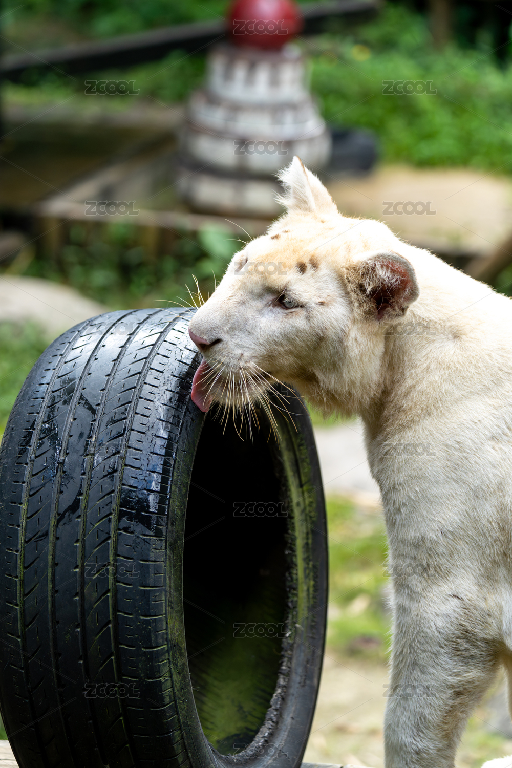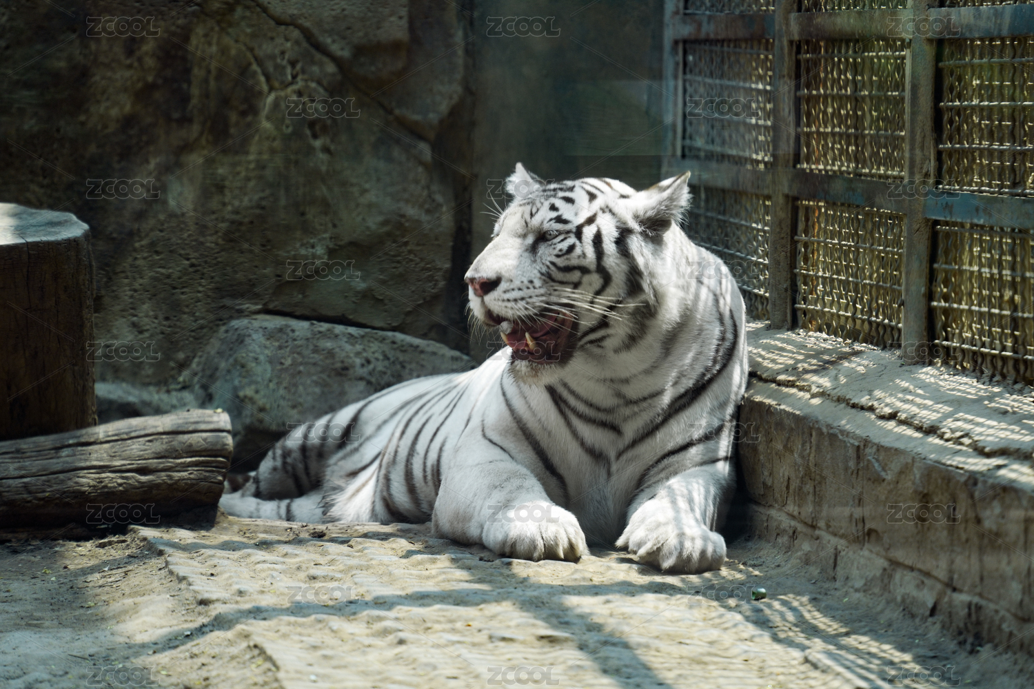 动物园中正在磨牙的白虎幼虎