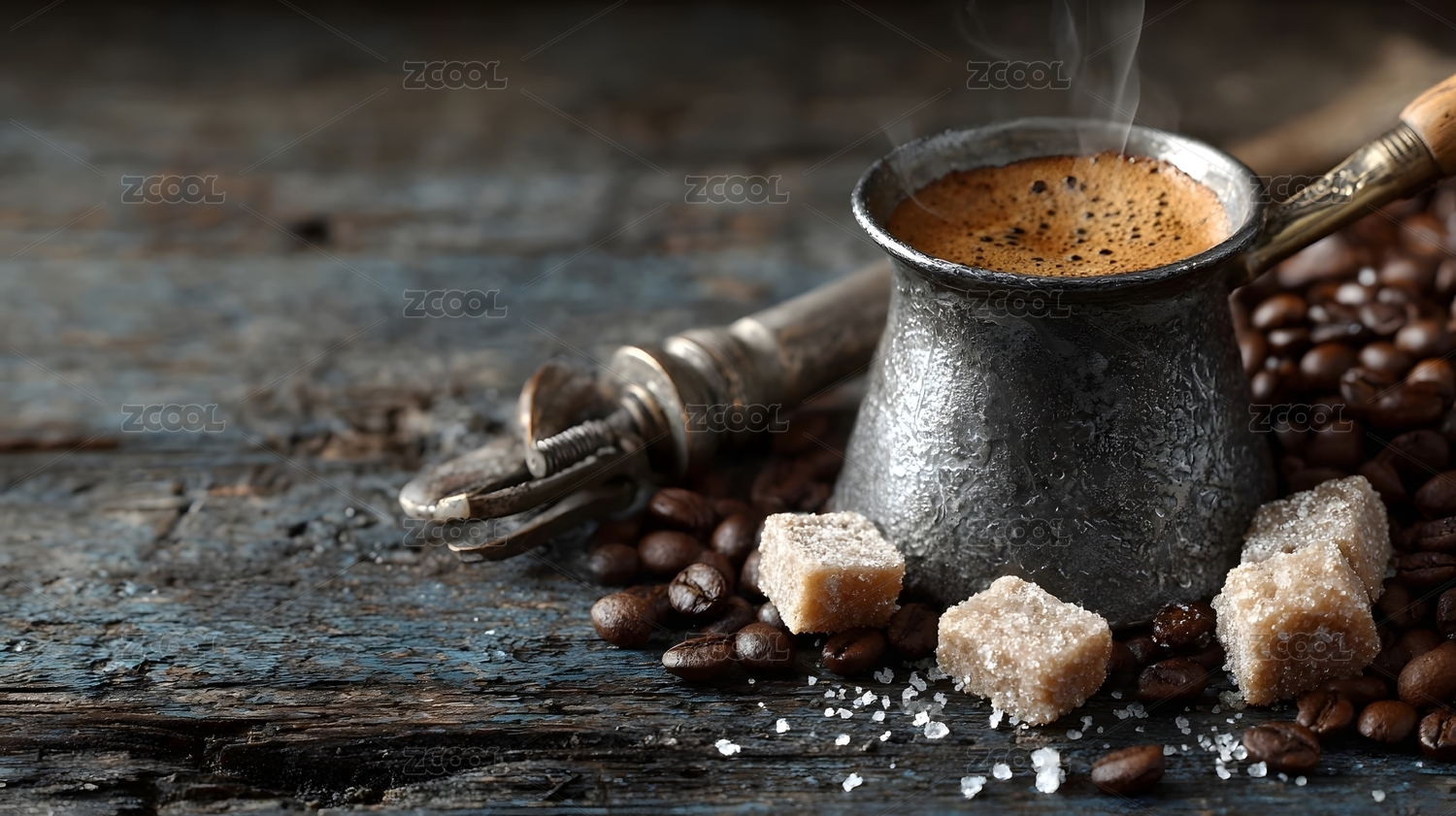 土耳其咖啡壶与糖