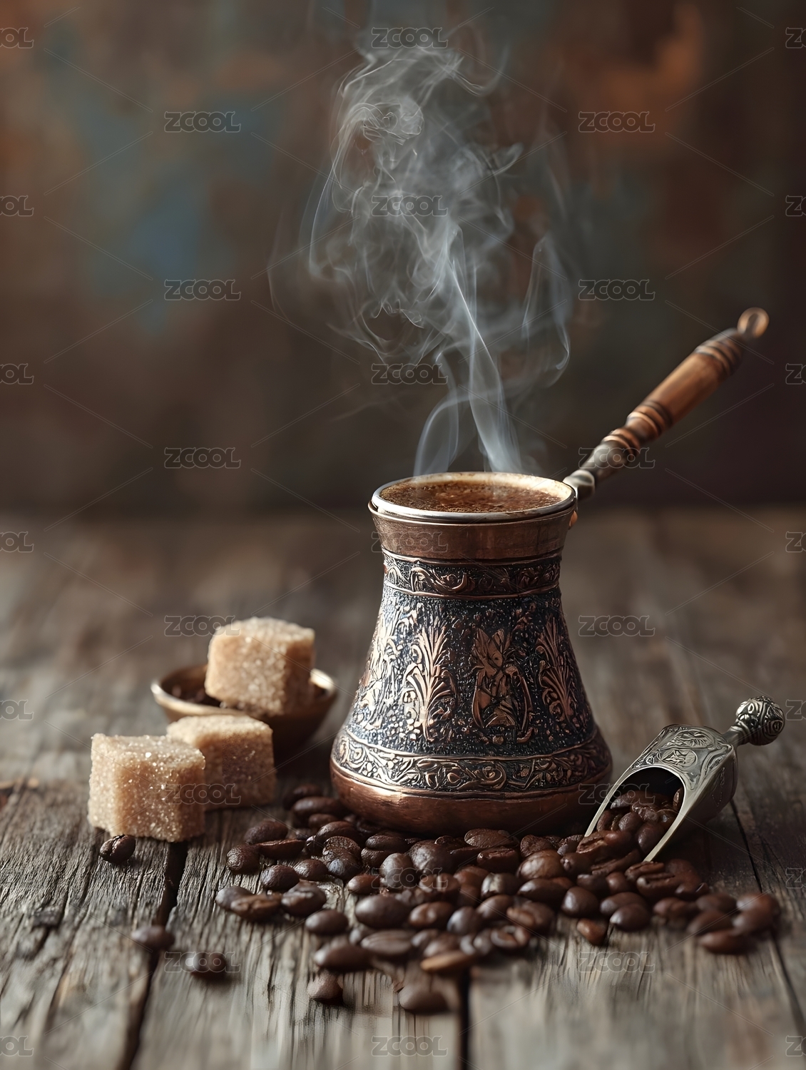 土耳其咖啡壶与咖啡豆
