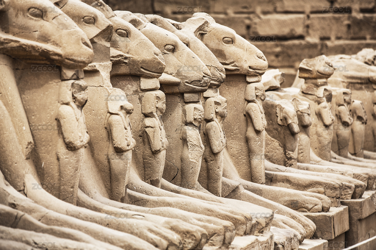 埃及卢克索地区卡尔纳克神庙的公羊狮身石雕