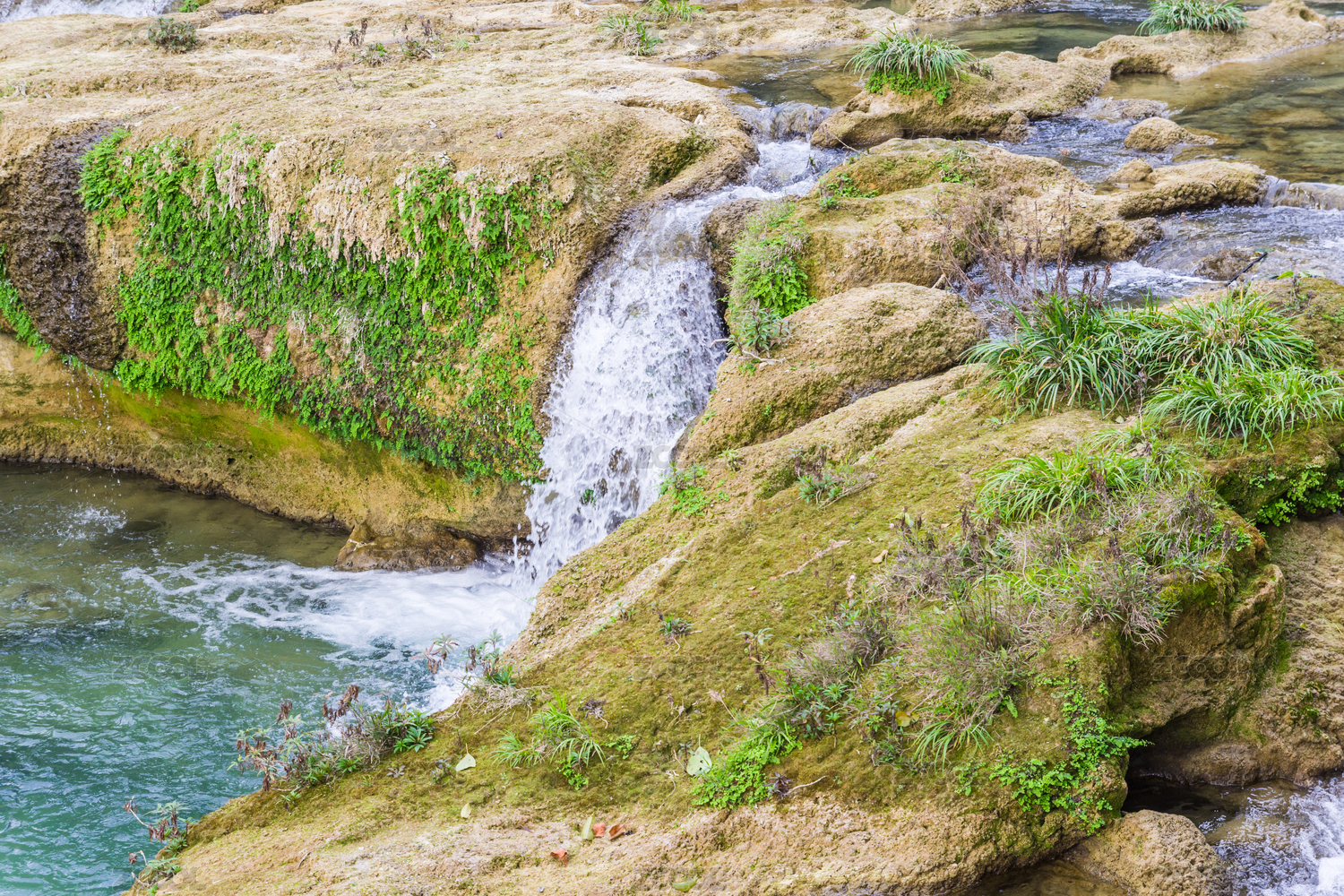 中国贵州黔南荔波小七孔河谷跌水瀑布风光