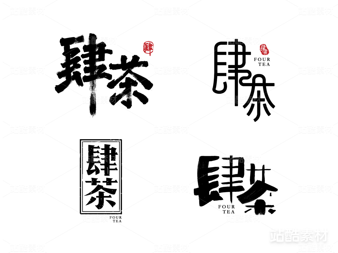 肆茶字体字形设计茶品牌