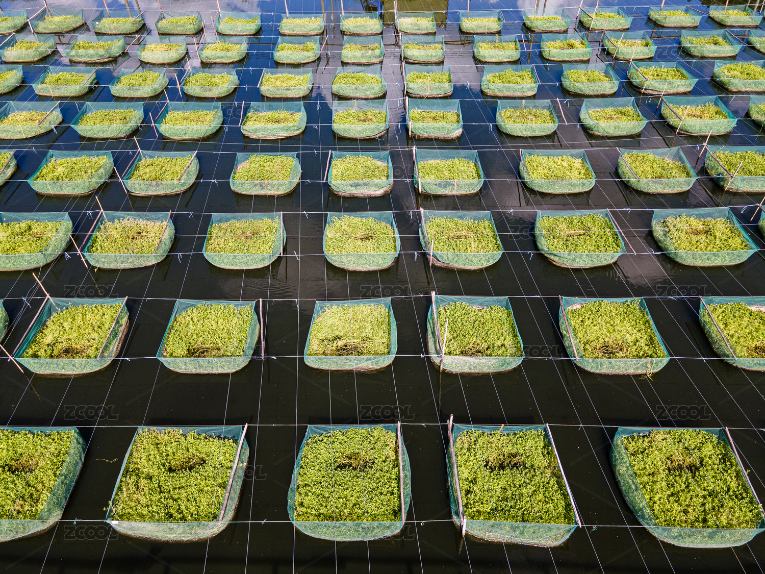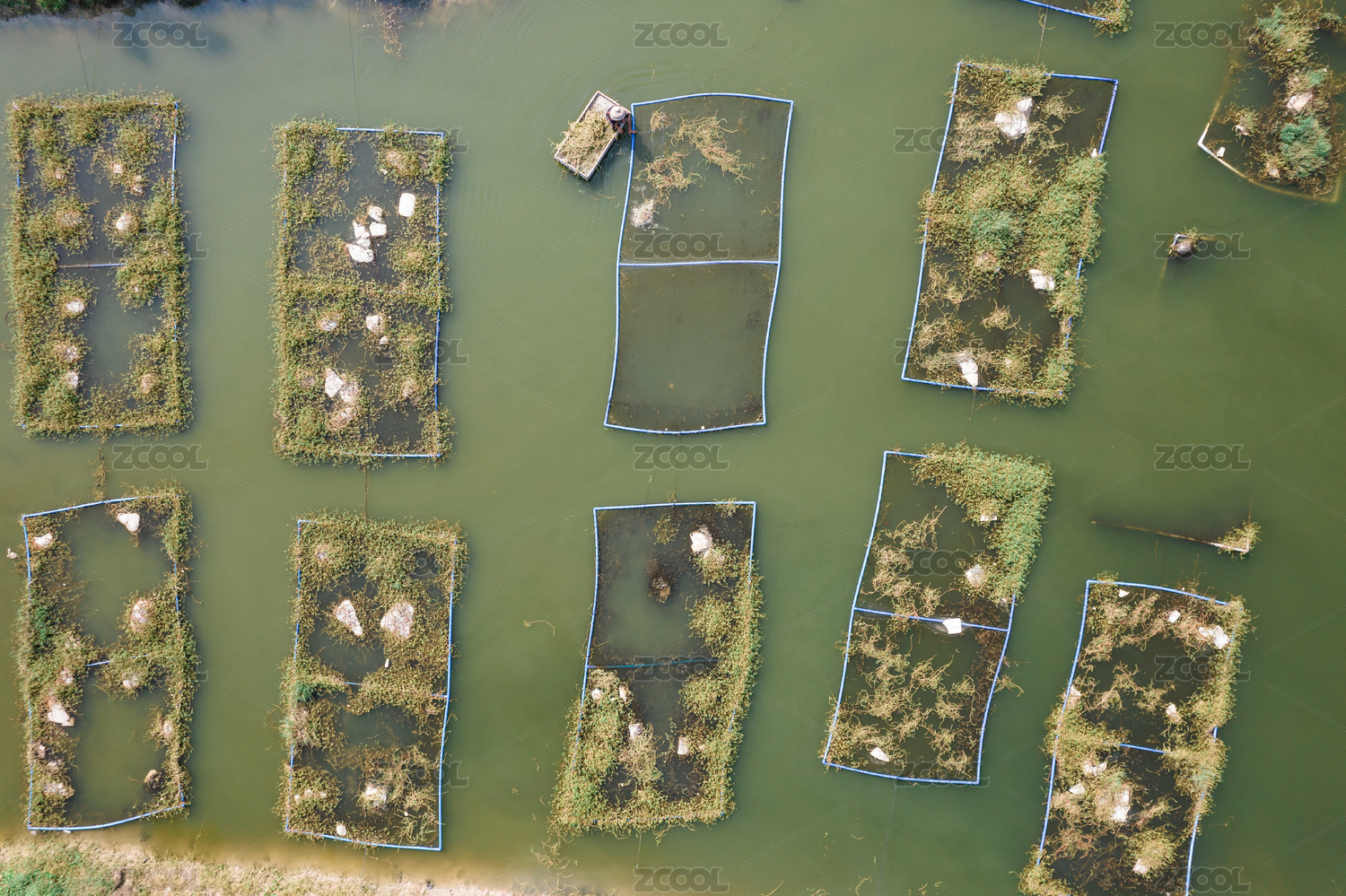 航拍水上养殖鱼塘