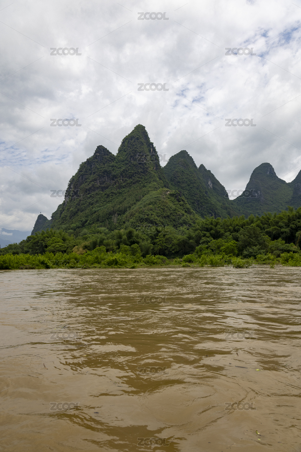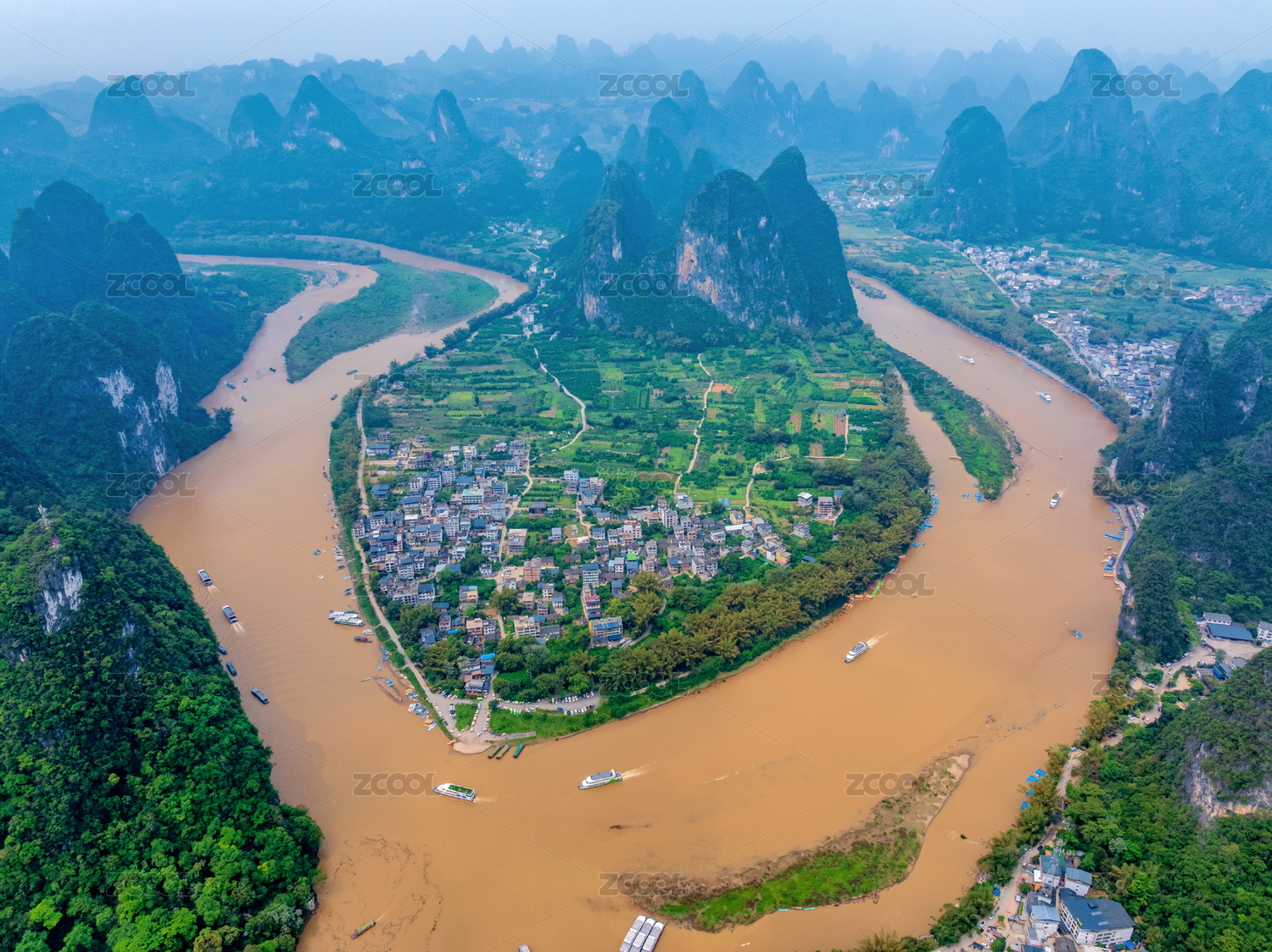 中国广西桂林兴坪古镇大面山漓江日出风光