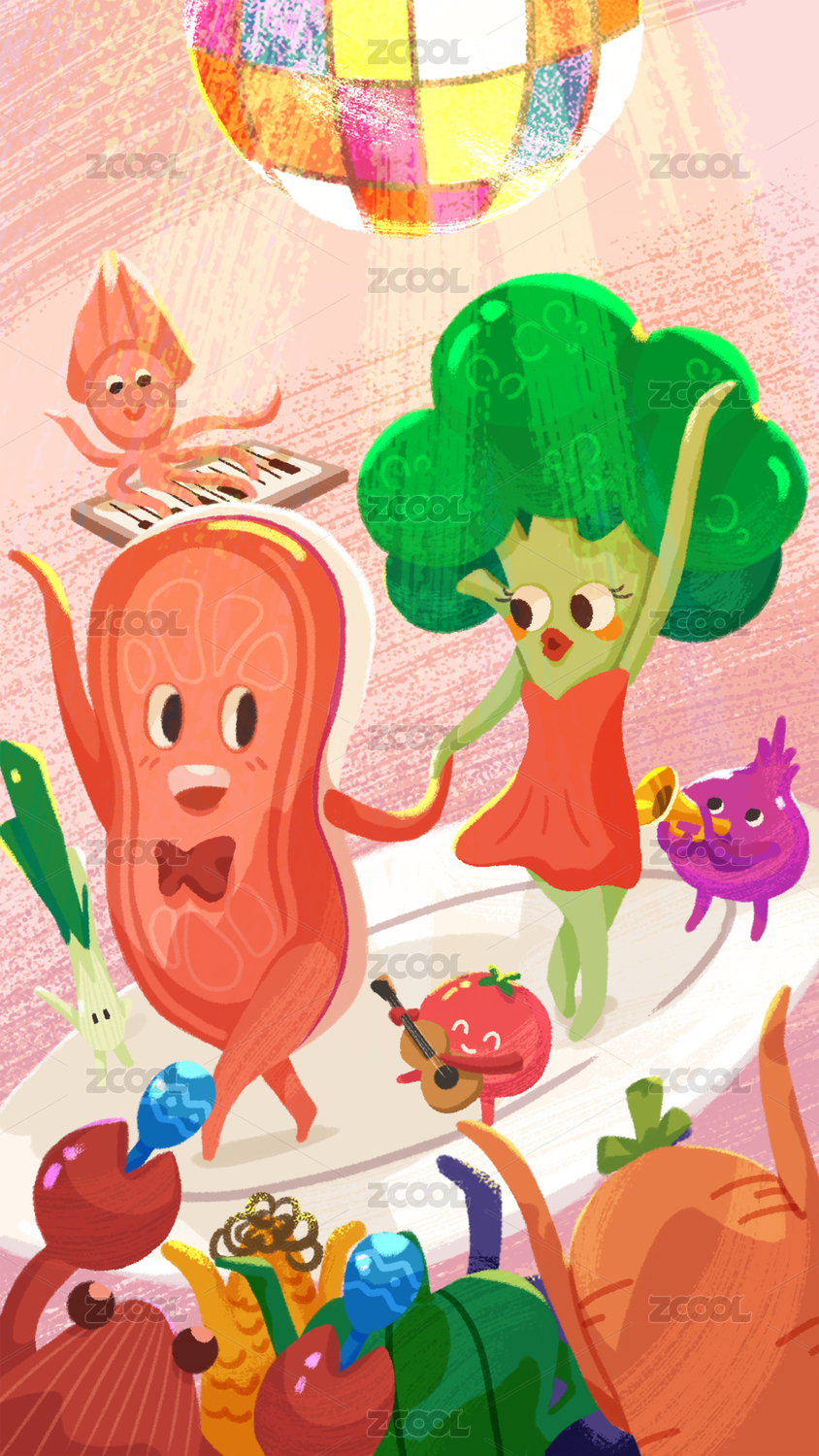 生鲜跳舞狂欢插画海报