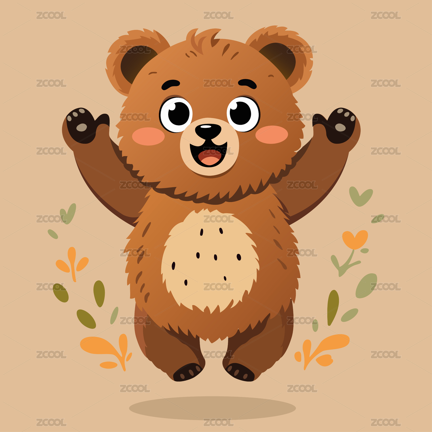 卡通可爱儿童海报素材跳舞的小熊矢量插画