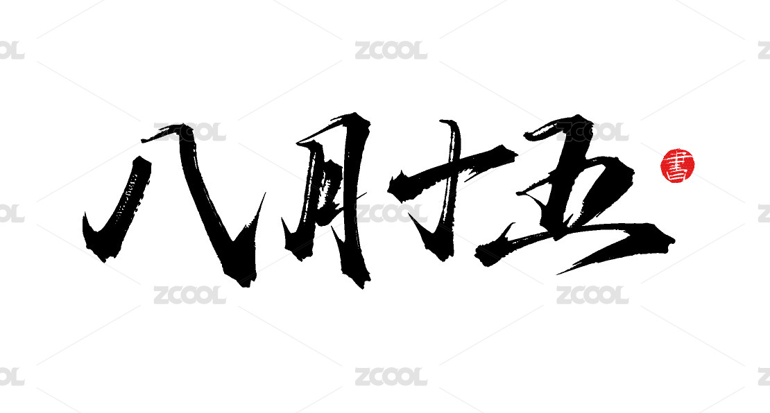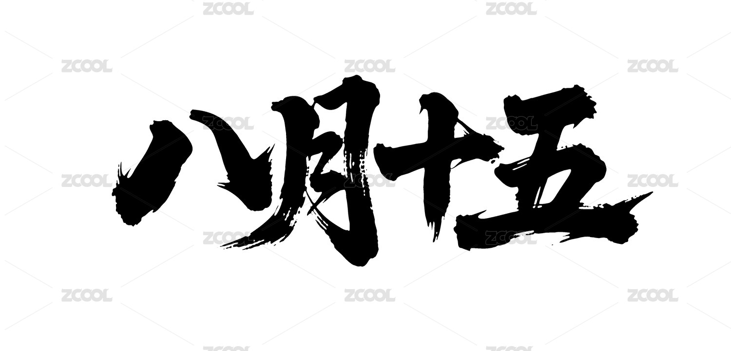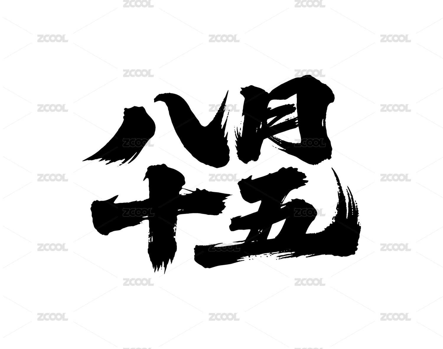中国传统节日素材--中秋节八月十五蓝色书法字体