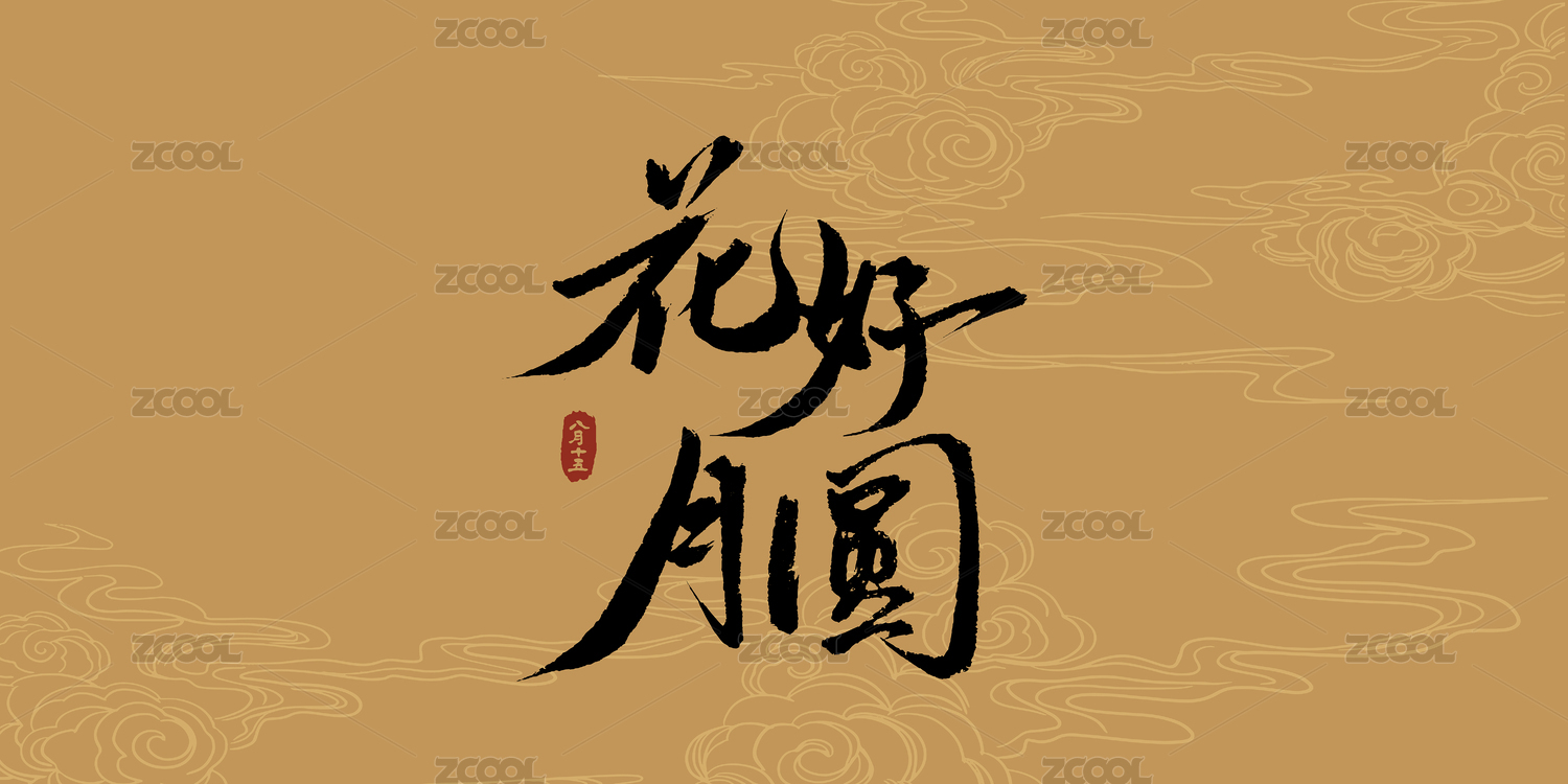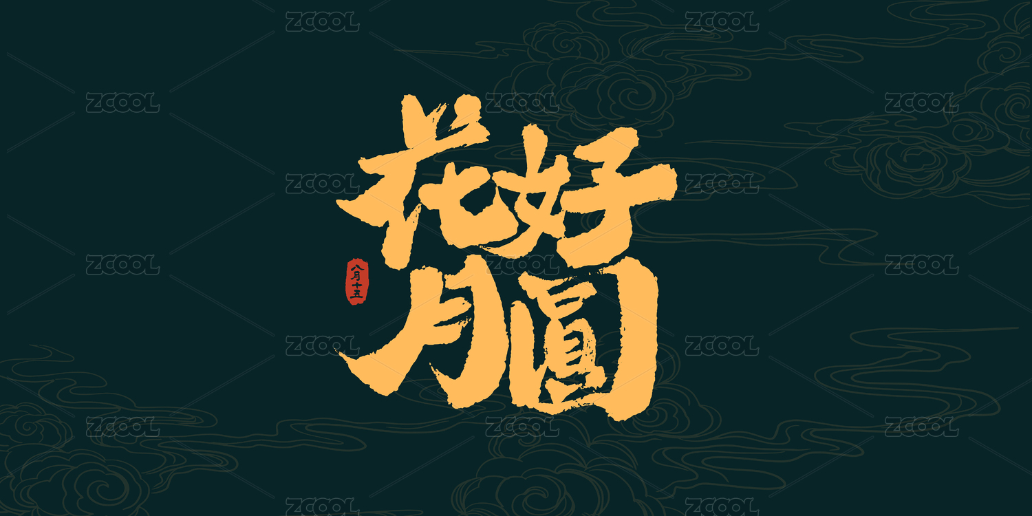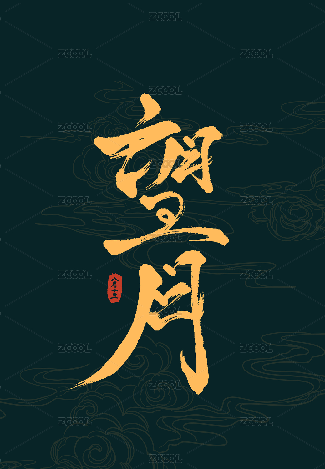 中国传统节日素材--中秋节八月十五蓝色书法字体