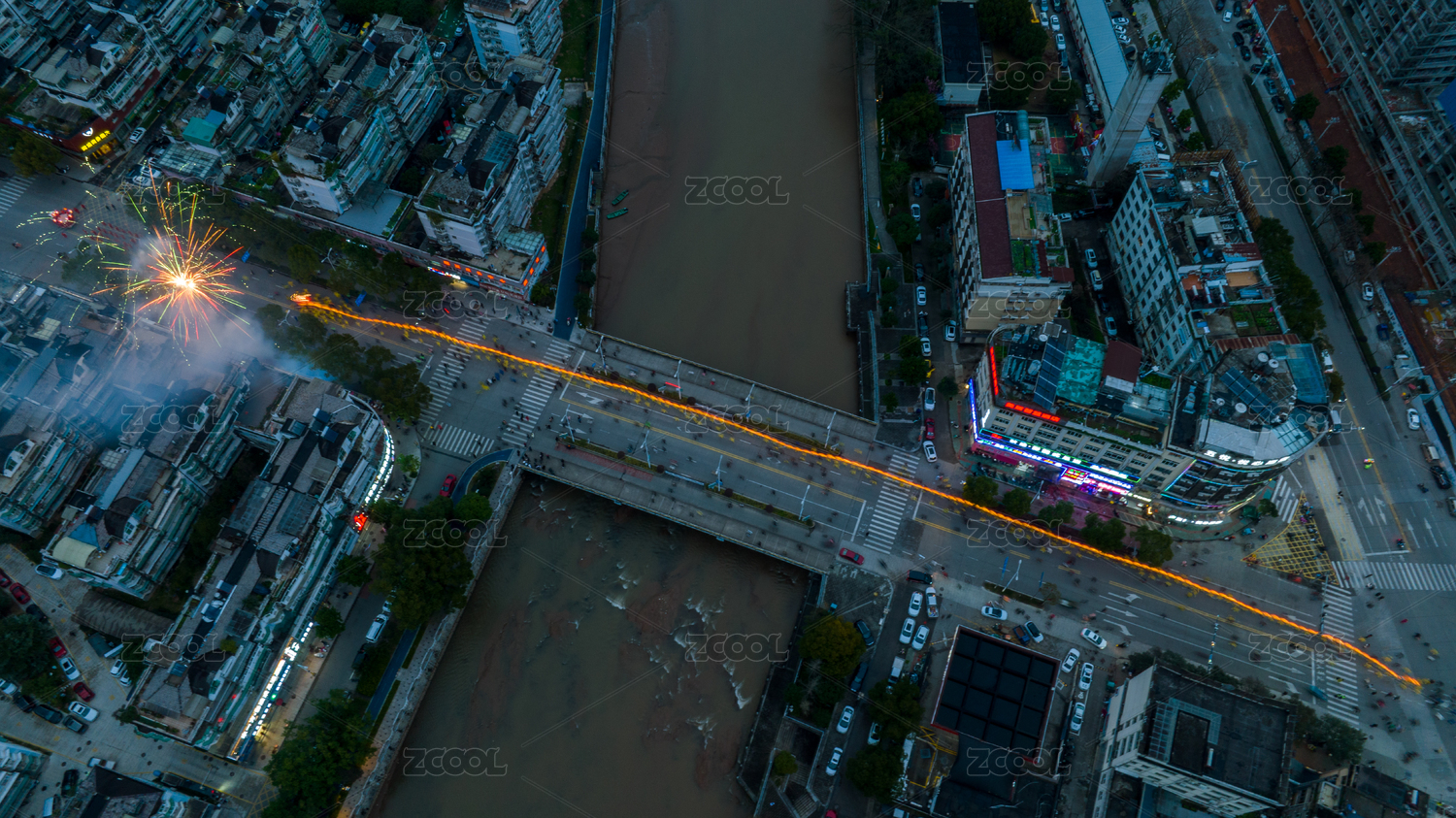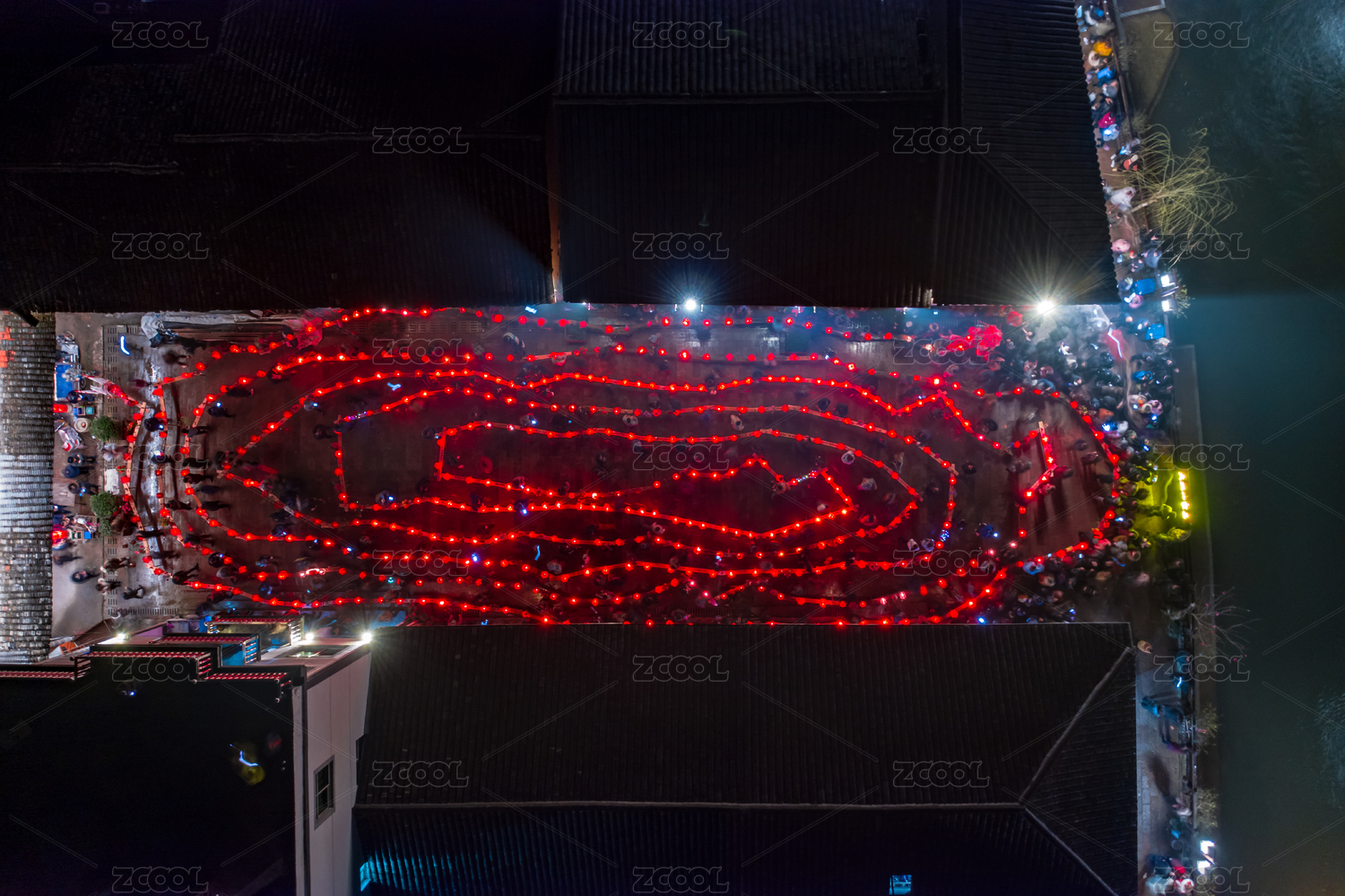 俯拍磐安双峰传统古村落元宵节迎龙灯