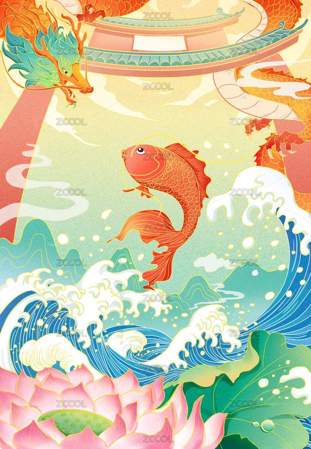 国潮中国风鲤鱼跃龙门