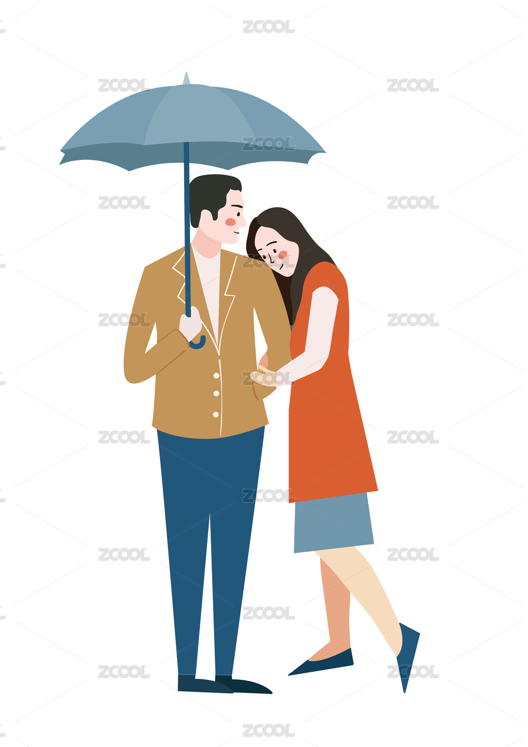 雨伞下的一对男女人物插图