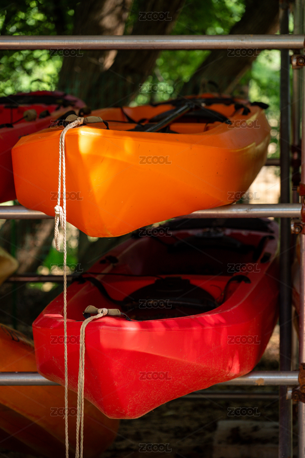 色彩鲜艳的皮划艇整齐排列
