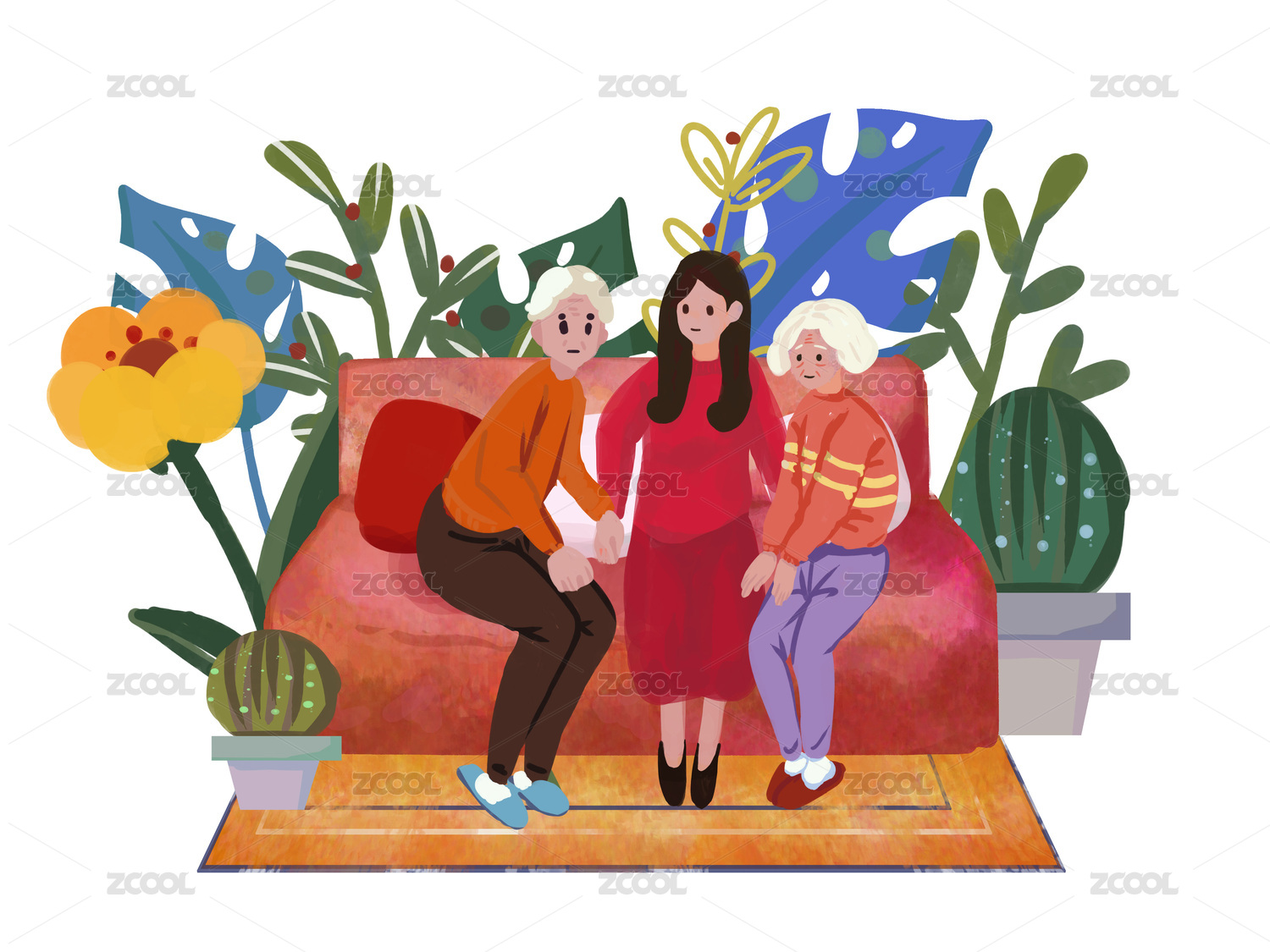 感恩节一家人坐沙发三个人