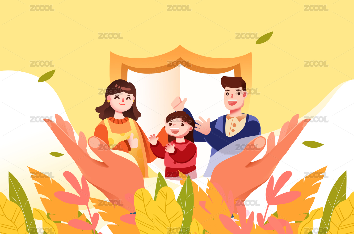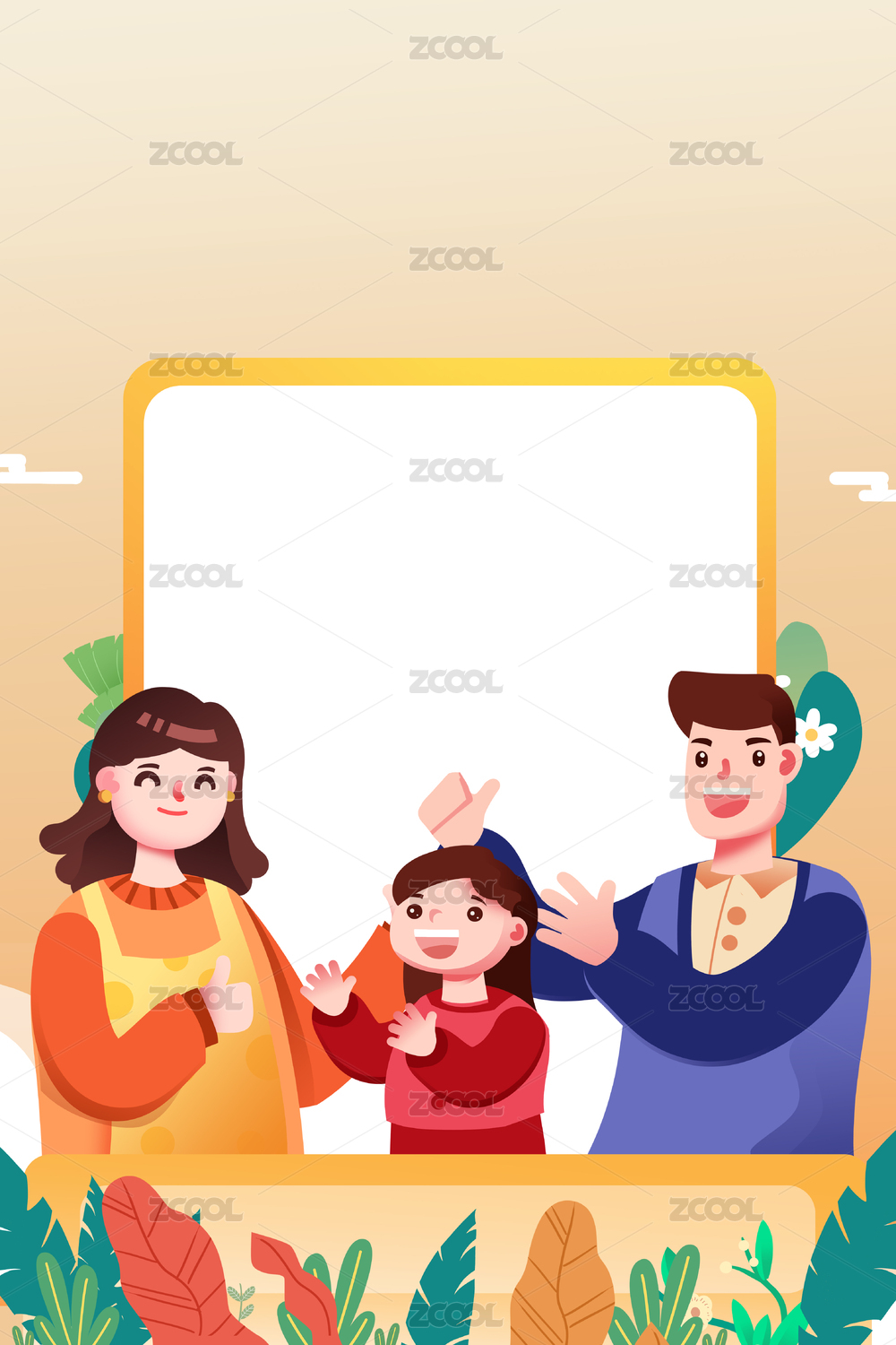 卡通手绘一家人三个人温馨相亲相爱插画